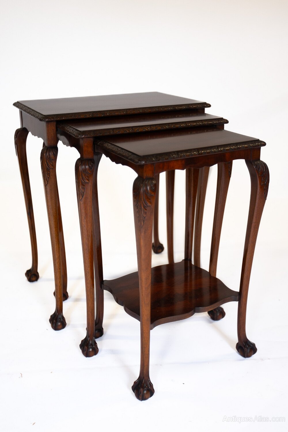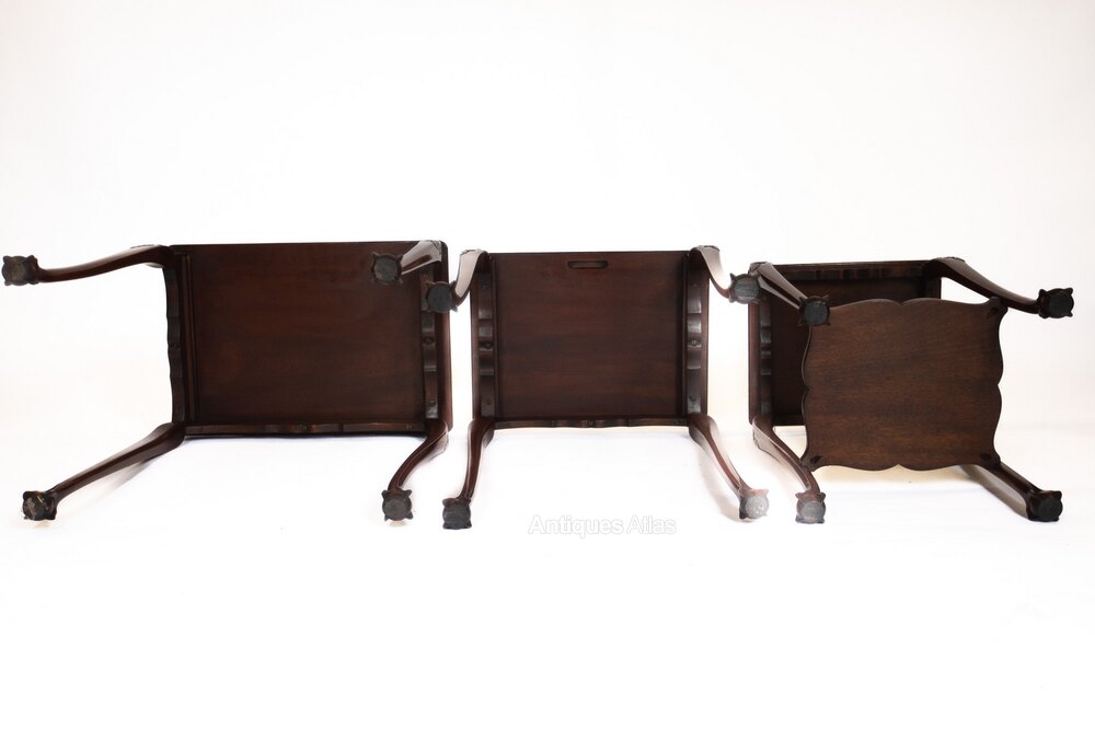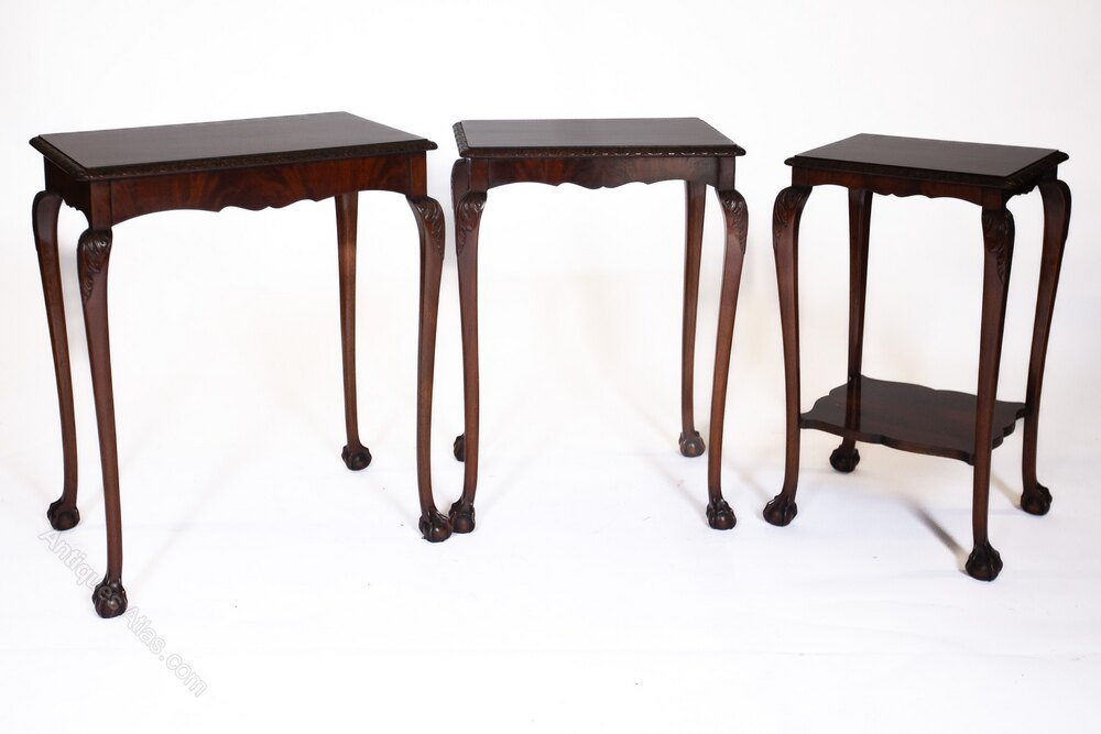 Fine Nest of 3 Mahogany & Carved Nest of tables