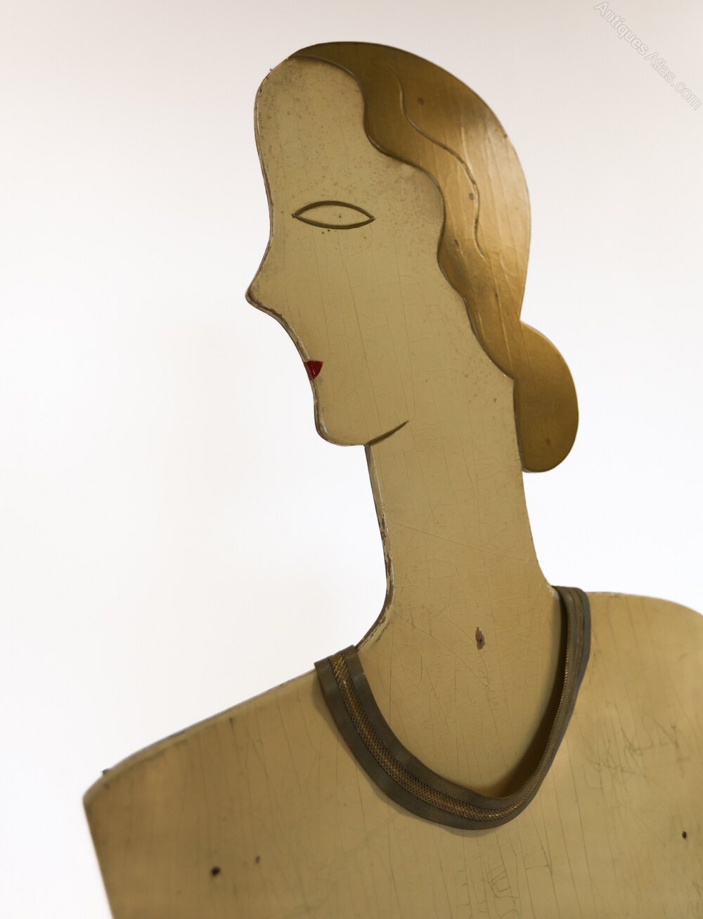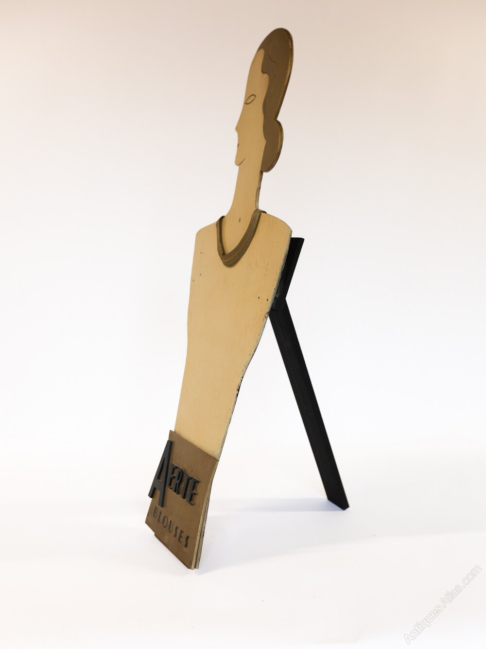 Art Deco Shop Advertising Board circa 1930sPlywood Board With Silhouette Lady upper body