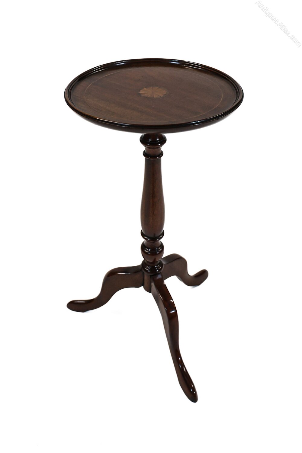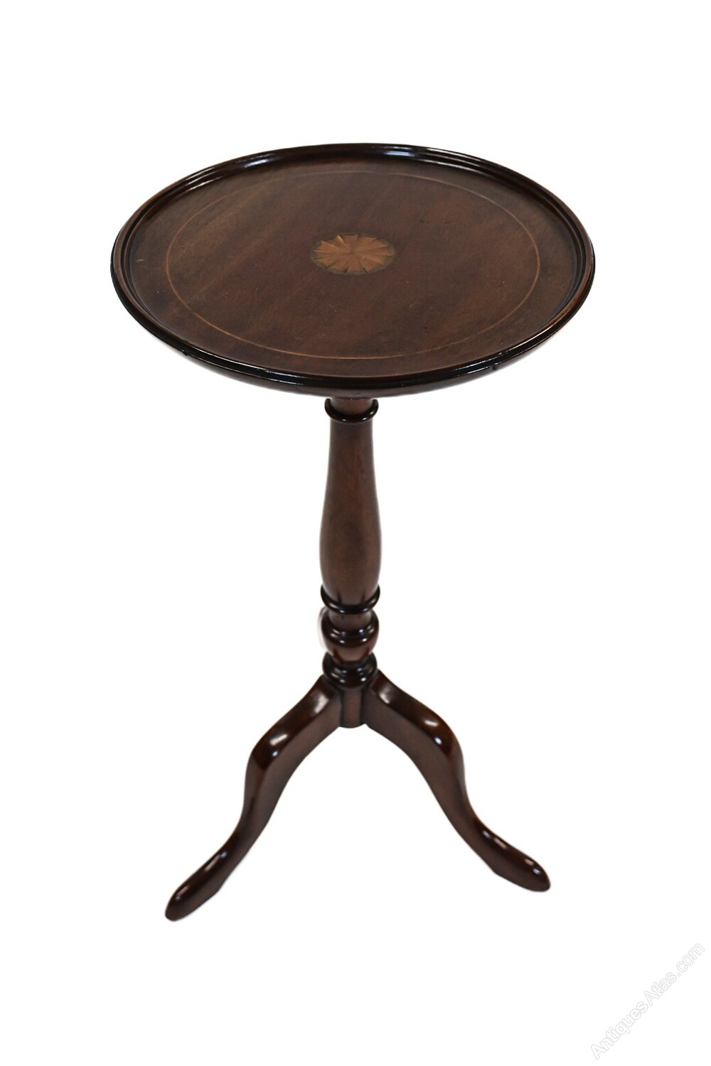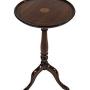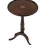 Edwardian inlaid mahogany wine table,Circular dished top, 28cm diameter top