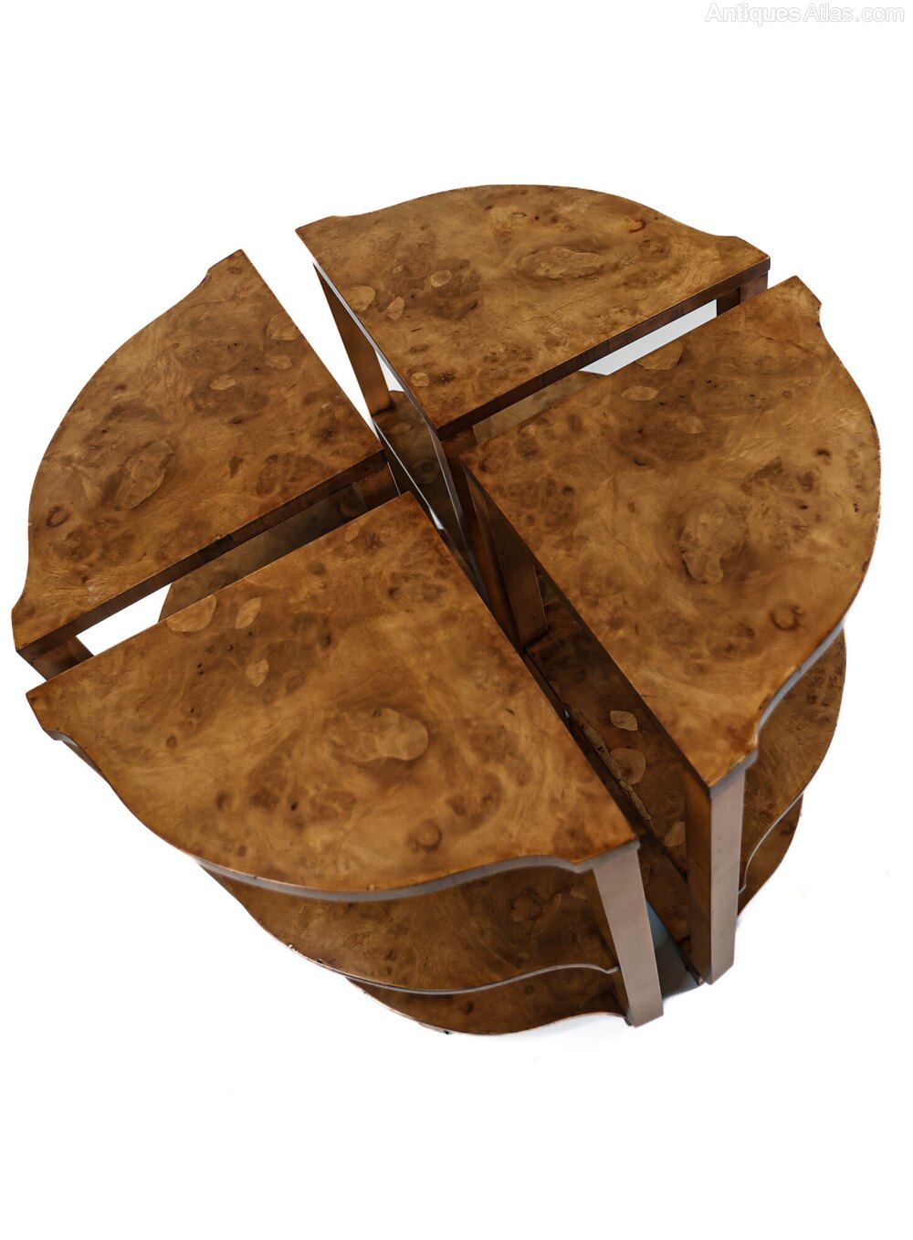 Art Deco Burr Walnut Nest of 4 tables 1930s