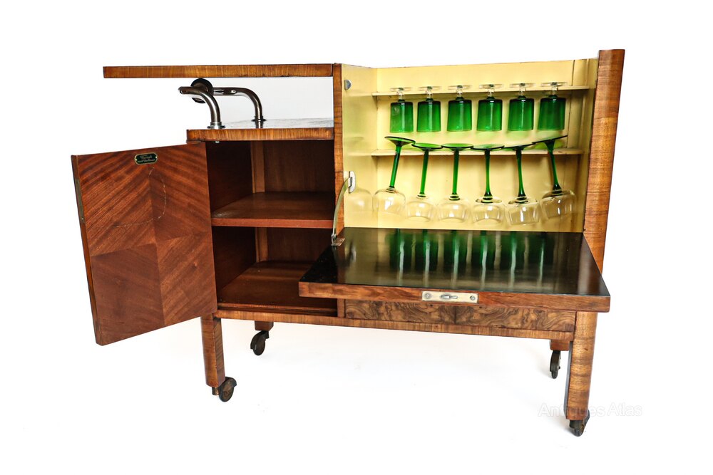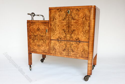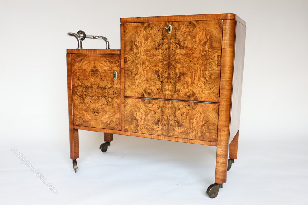 Art Deco Burr Walnut Cocktail Trolley,by Thornet 1930s