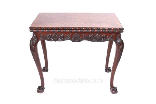 Fine Georgian Revival Walnut & carved Irish card table, circa 1900Burr walnut top with cross-banding,