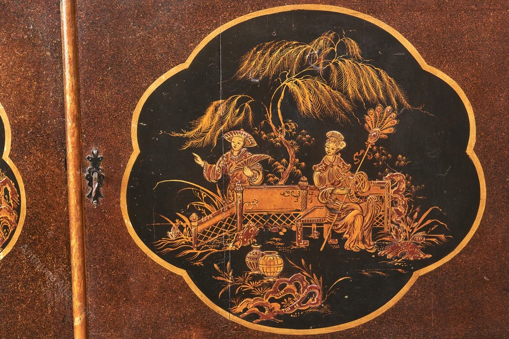 Two doors, with shaped Chinoiserie decorated panels Depicting: