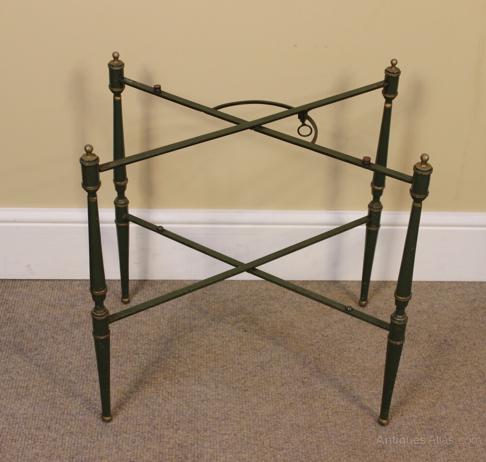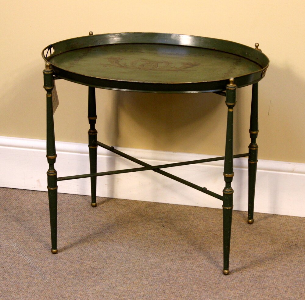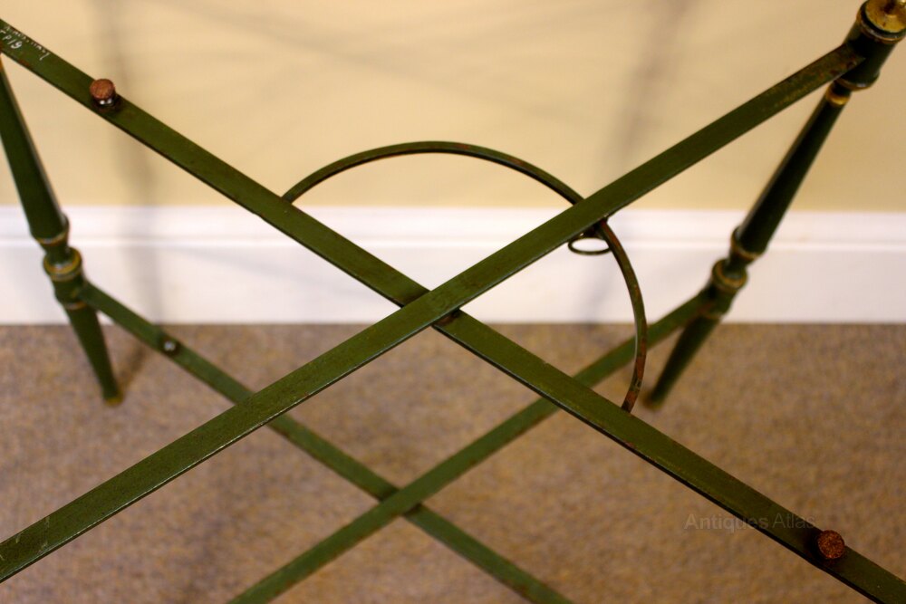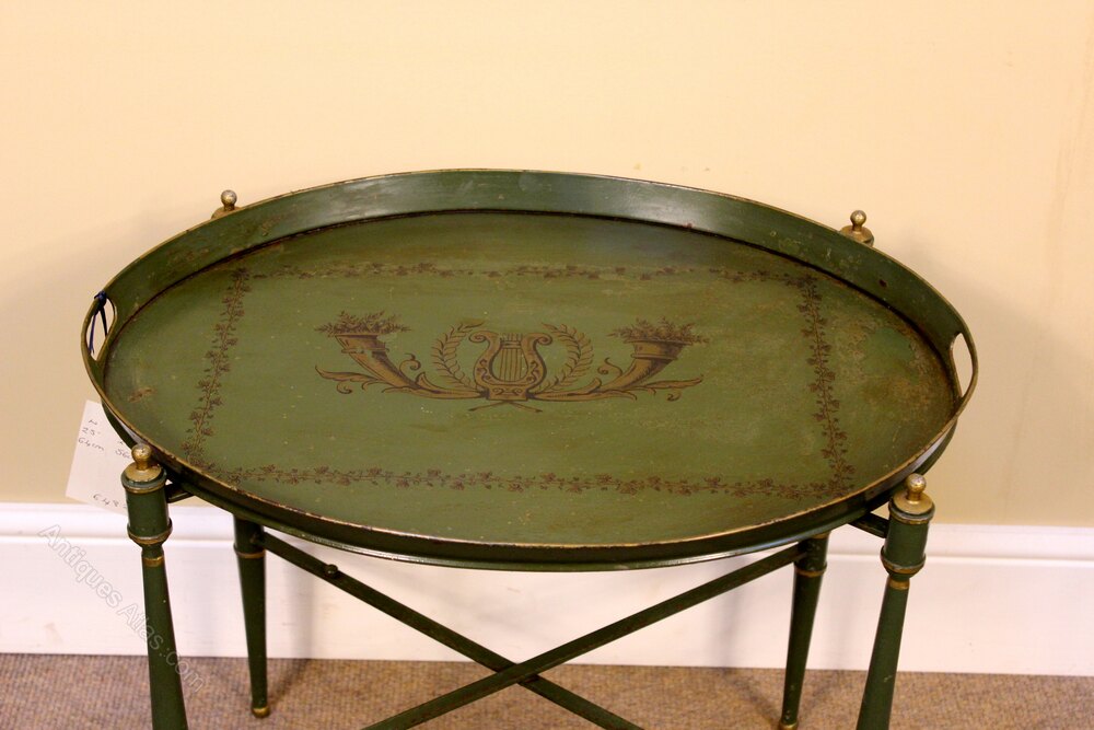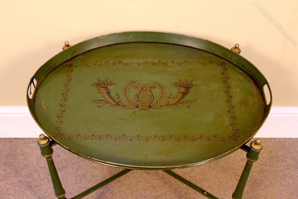 Early 20thc. Tin Toleware Tray on StandWith painted decoration on folding stand