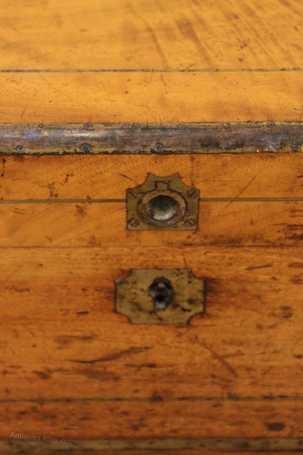 Brass inlay, brass handles & escutcheon.