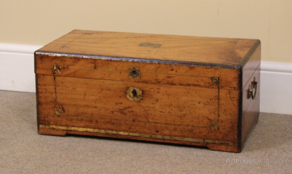19thc. Small Camphor Wood ChestWith brass bound corners & edges with