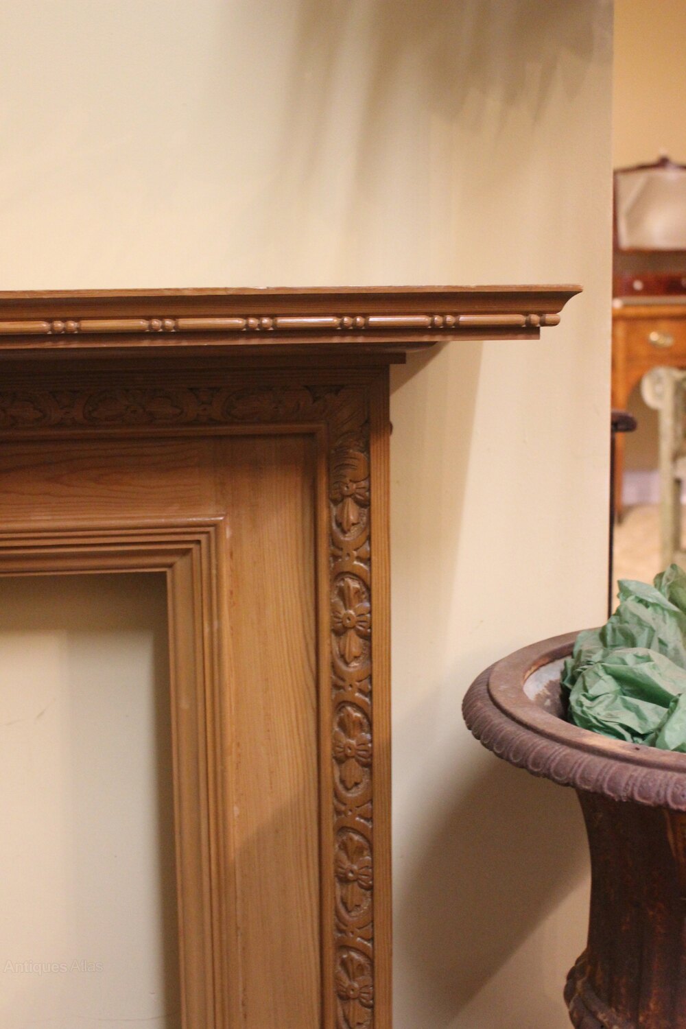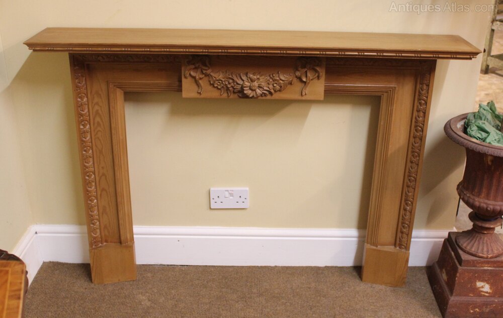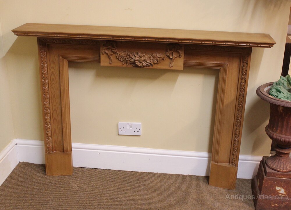 Mid Century Pine Fire Surroundwith floral carving & reeded