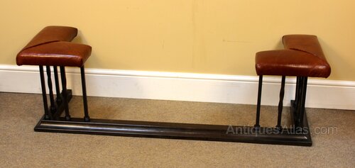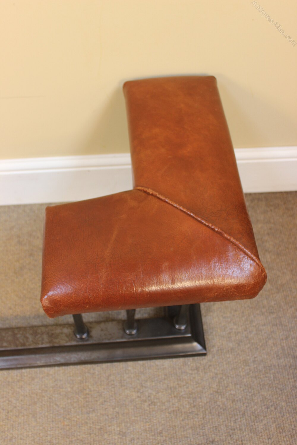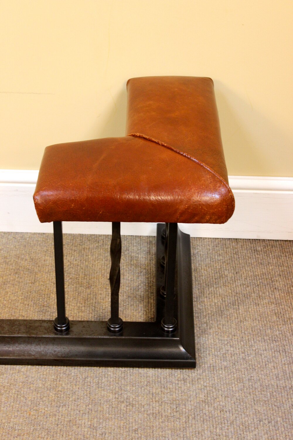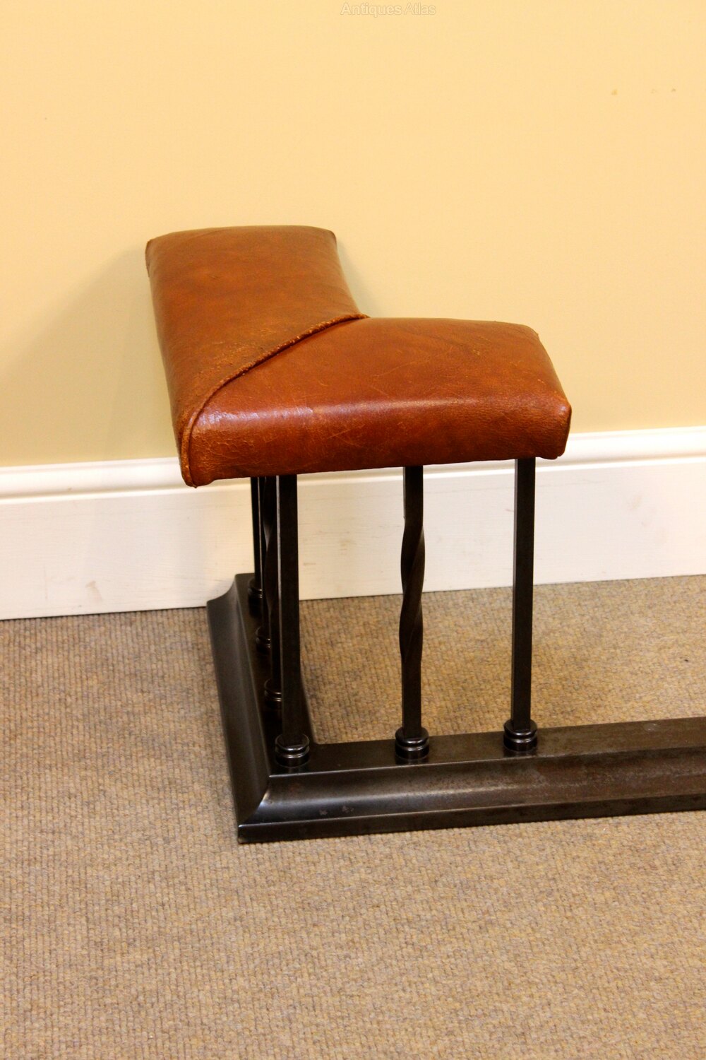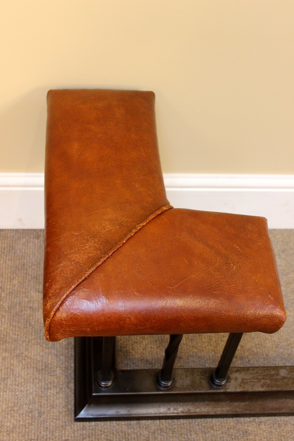 Early 20thc. Steel & Leather Club FenderWith square & twisted columns &