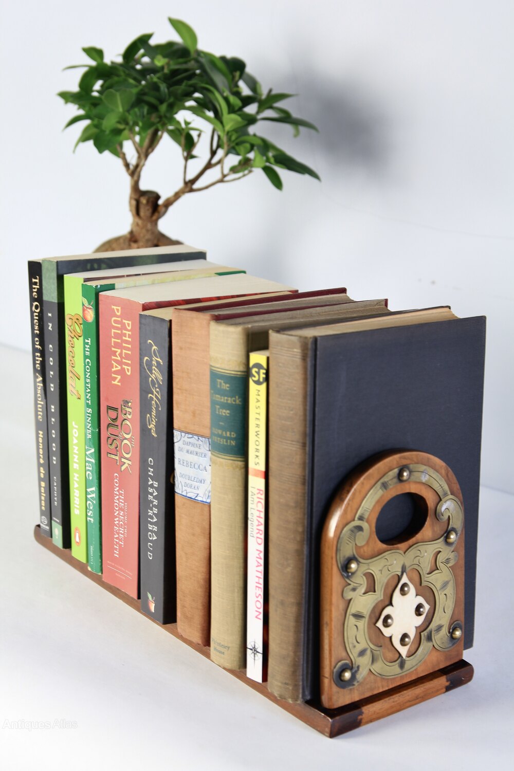 Late 19th century table top extending Book Shelf. It is made from rosewood with decoratve brass panels to the folding ends, which have carved out hand holds for portability.A simple but igenious sliding mechanism allows it to be adjusted in size.