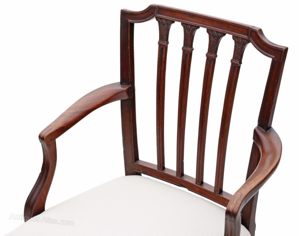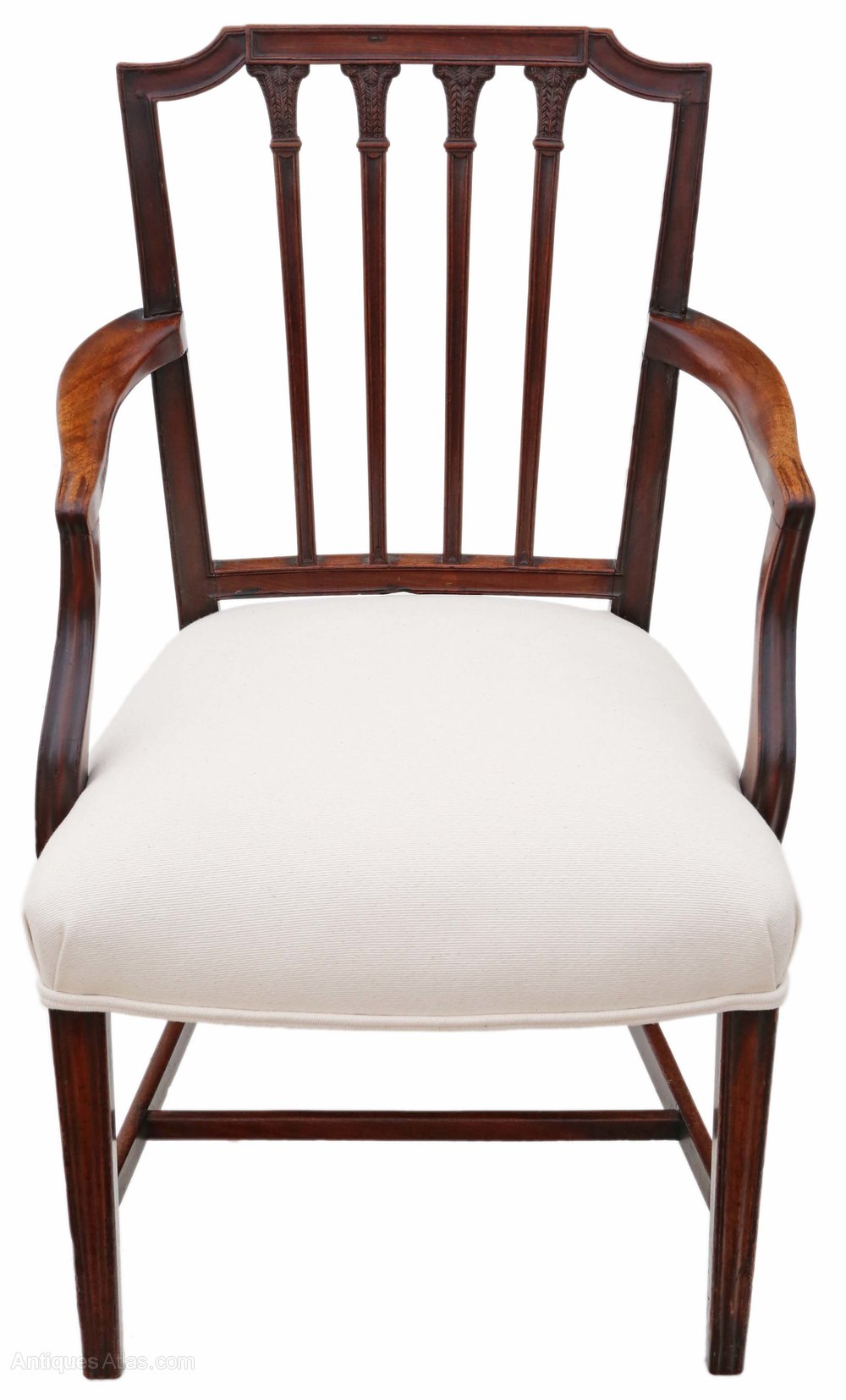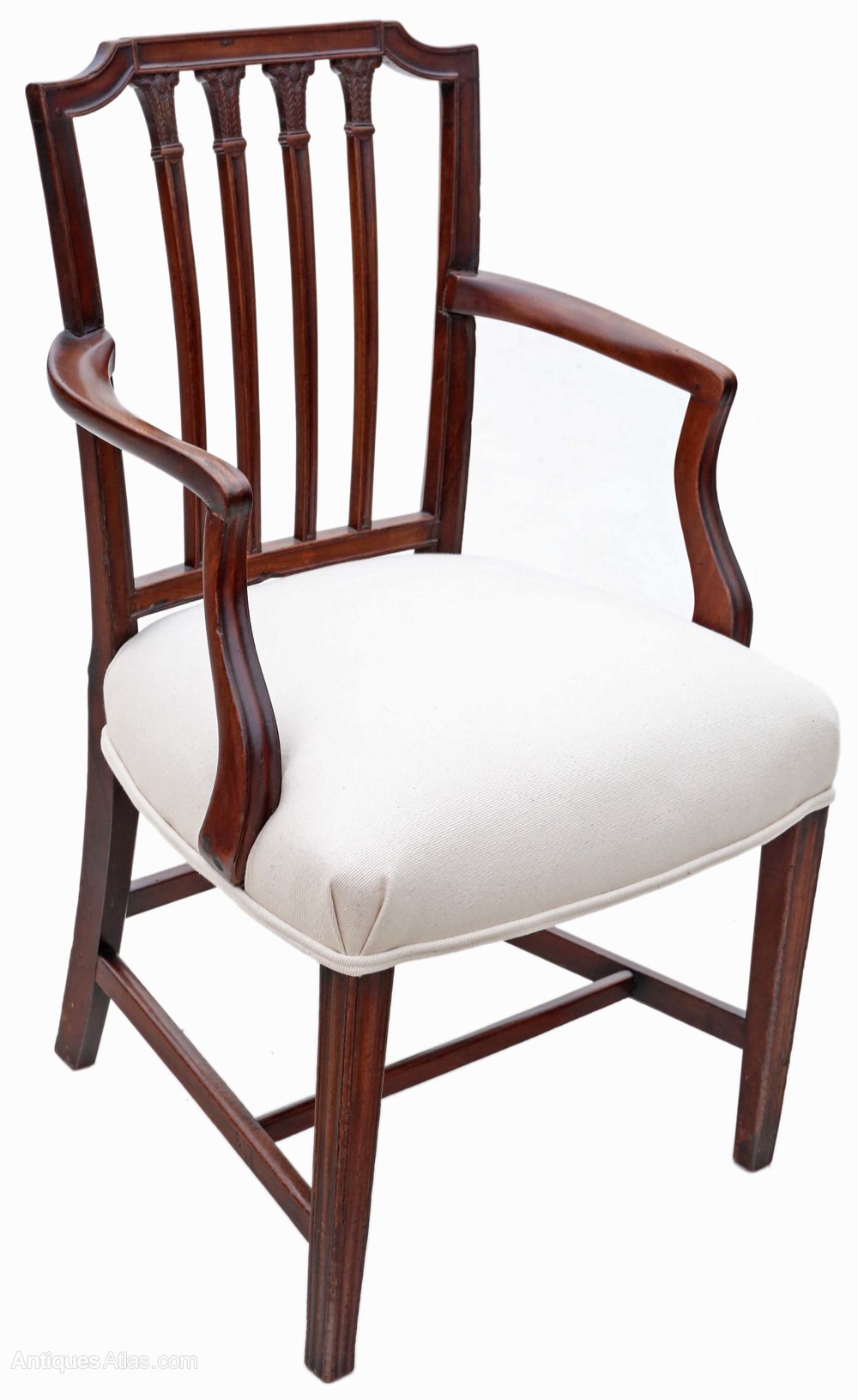 Antique fine quality early 19th Century Georgian mahogany elbow, carver or desk chair. Very rare, with an elegant design and fine detailed carving.No loose joints or woodworm.