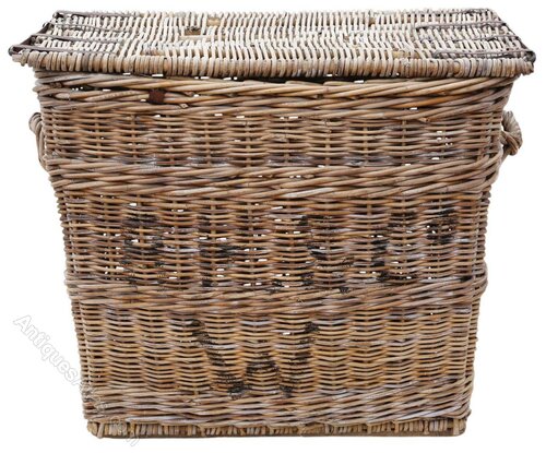 In good antique/vintage condition, the basket shows minor historic knocks, marks, cracks, scratches, wear, and imperfections—typical for an item of its age. There are also some historic extinct woodworm holes in the wooden rails on the underside, which have been treated for peace of mind.