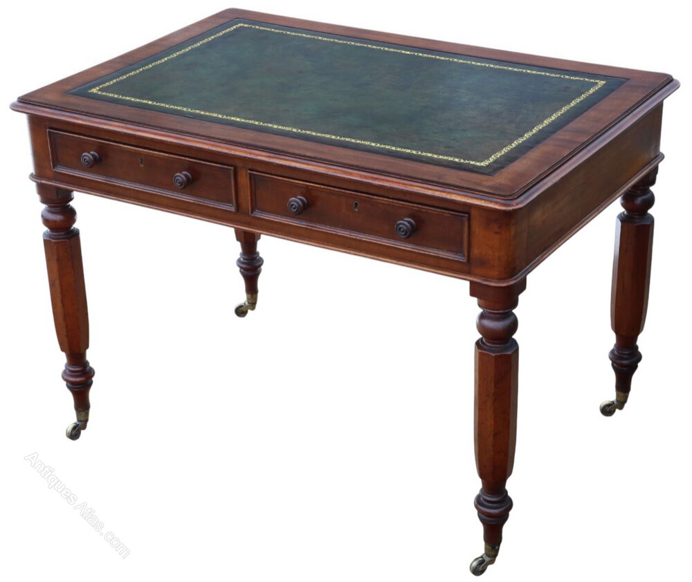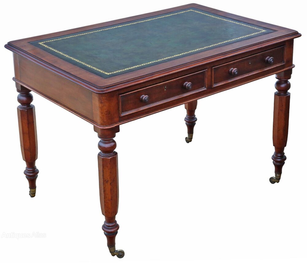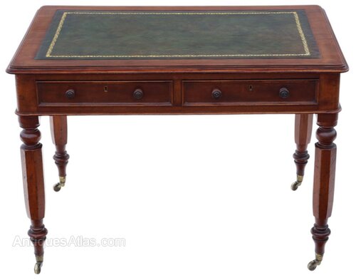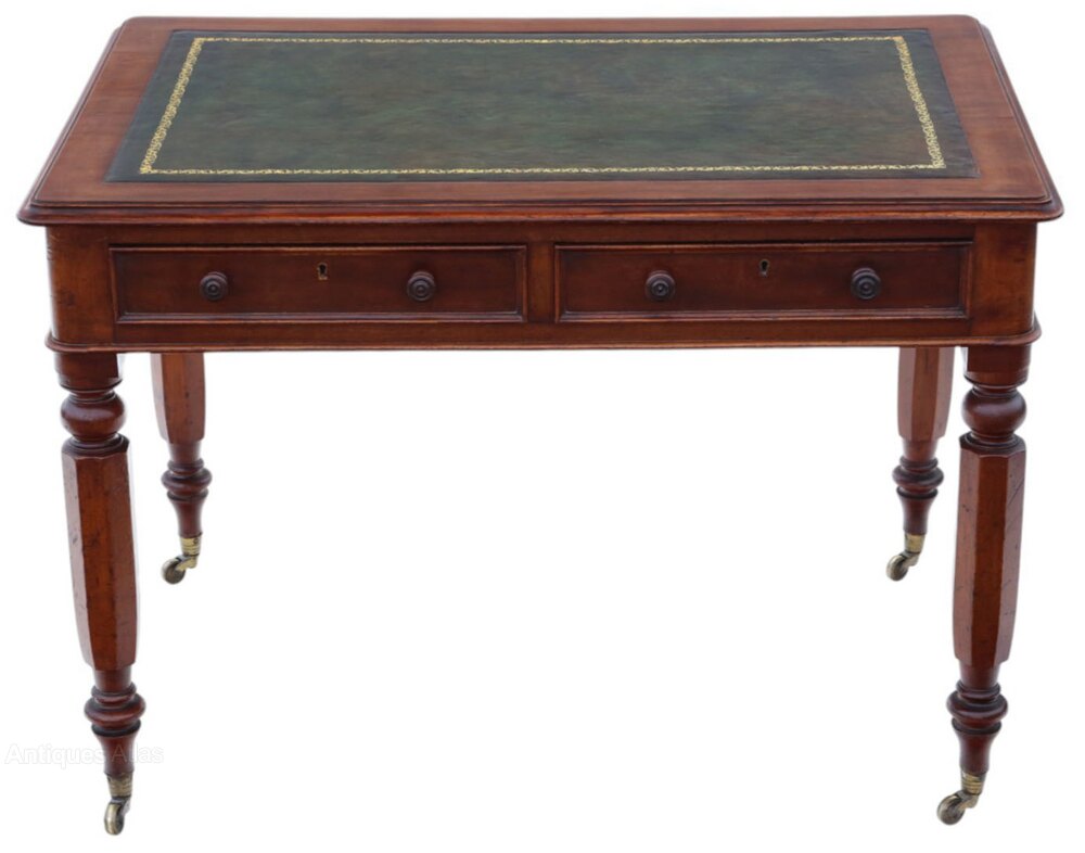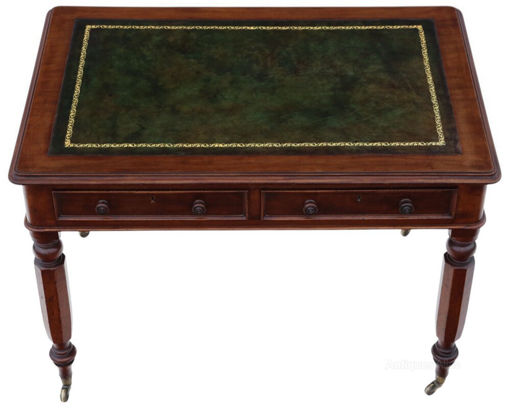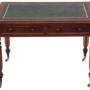 The desk boasts a sturdy build with tight joints and no signs of woodworm. The mahogany-lined drawers glide freely, providing functional storage and maintaining the piece’s refined charm.