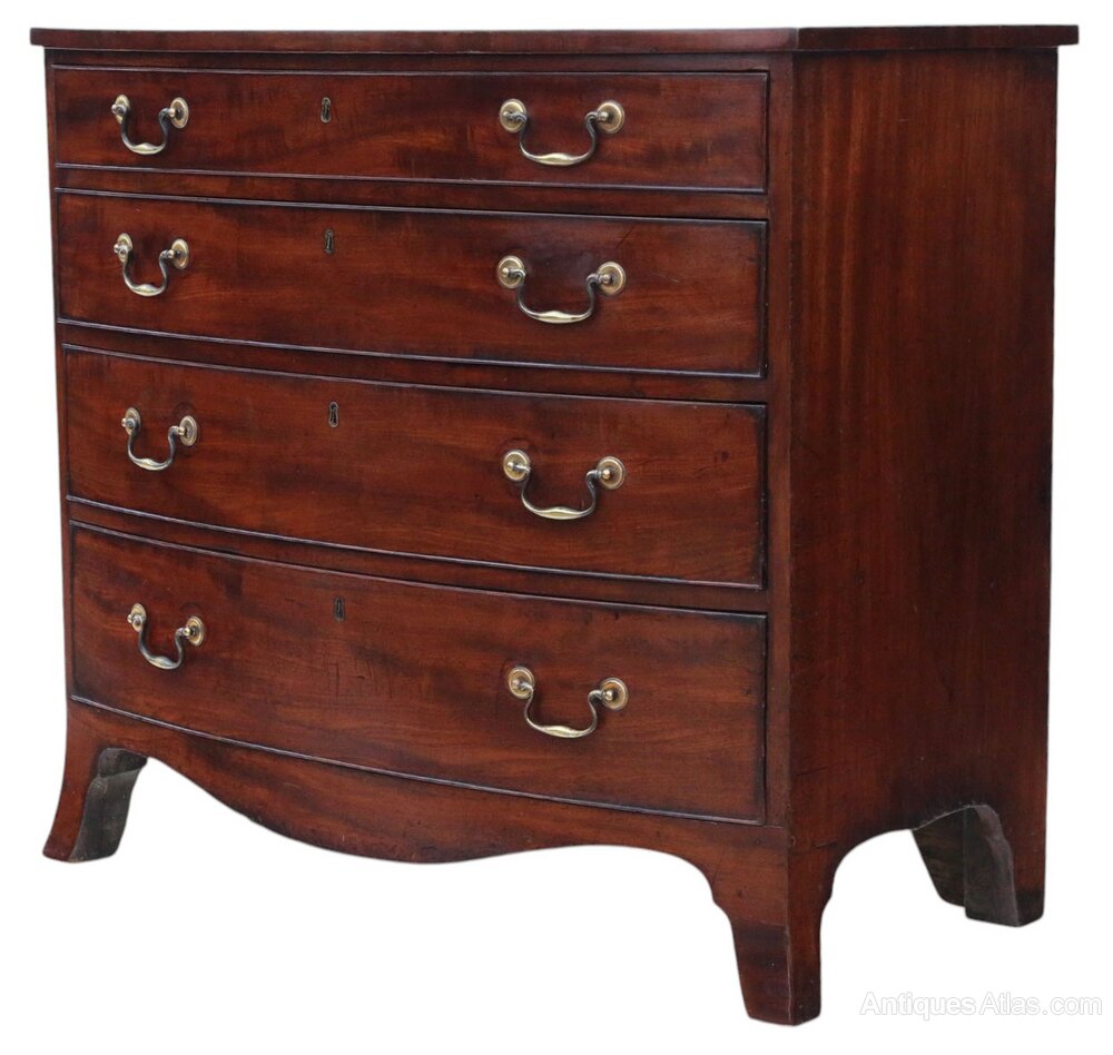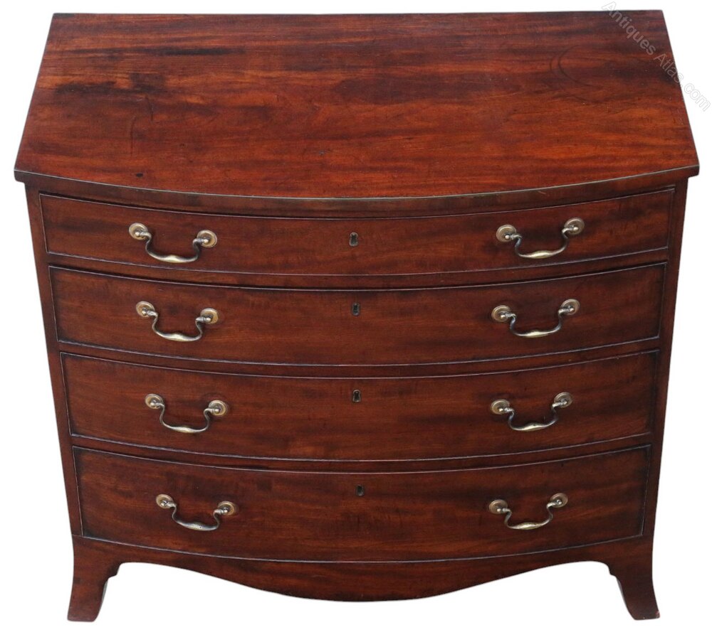 Antique Late 18th / Early 19th Century Georgian c.1800 Mahogany Chest of Drawers – Fine QualityA fine quality Georgian mahogany chest of drawers, dating from around 1800. Crafted with well-selected mahogany veneers, this elegant piece displays the classic lines of the Georgian period and a beautifully developed patina from over two centuries of waxing and polishing.