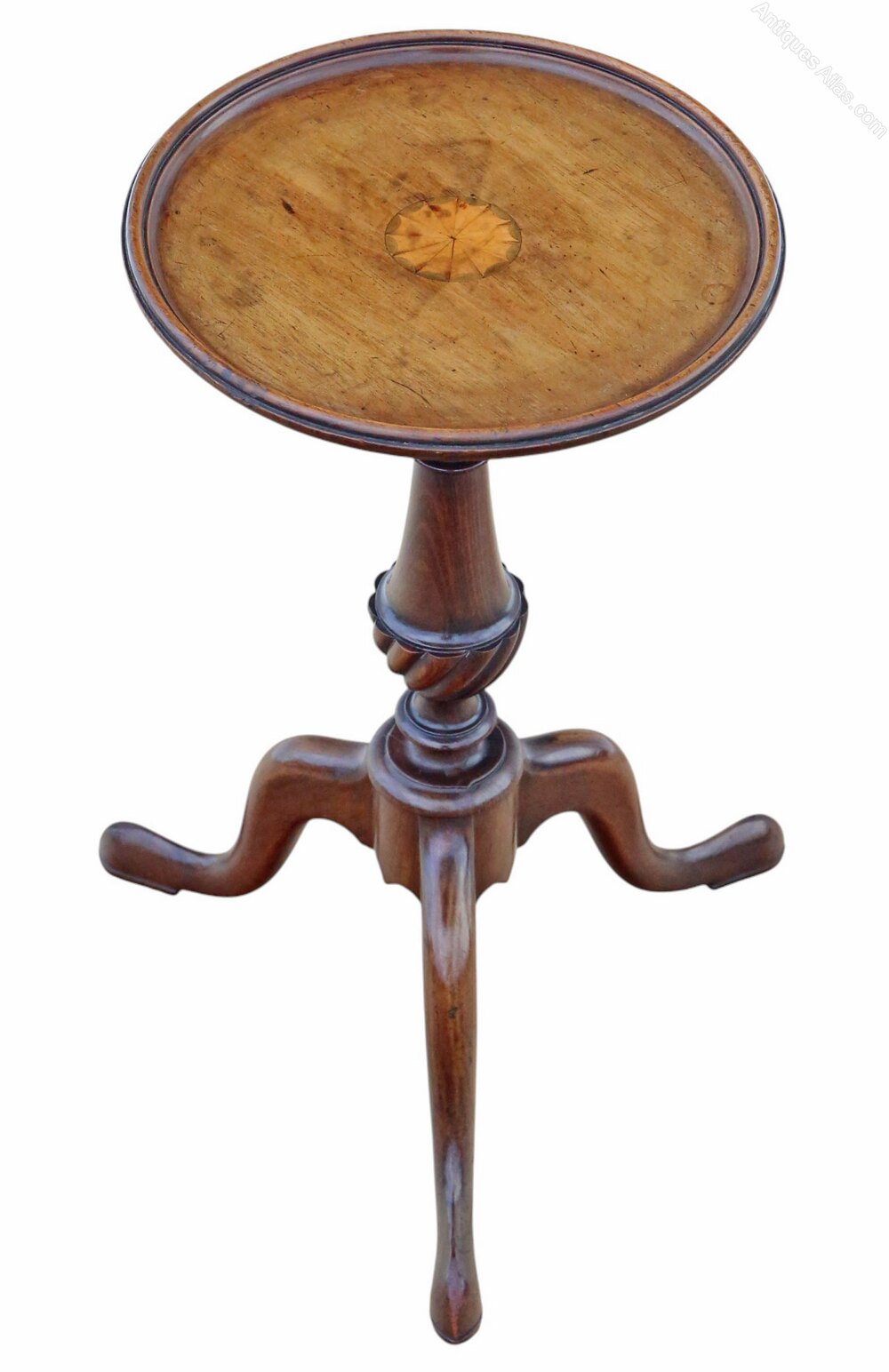 Antique 19th Century Inlaid Mahogany Wine Side / Occasional Table – Fine QualityFull of authentic charm and character, this rare decorative find would make a wonderful statement piece in the right setting. Featuring a sought-after curved base and a dished marquetry inlaid top, it combines elegance and functionality. It would be ideal as a wine or occasional table in a drawing room, study, or living space.