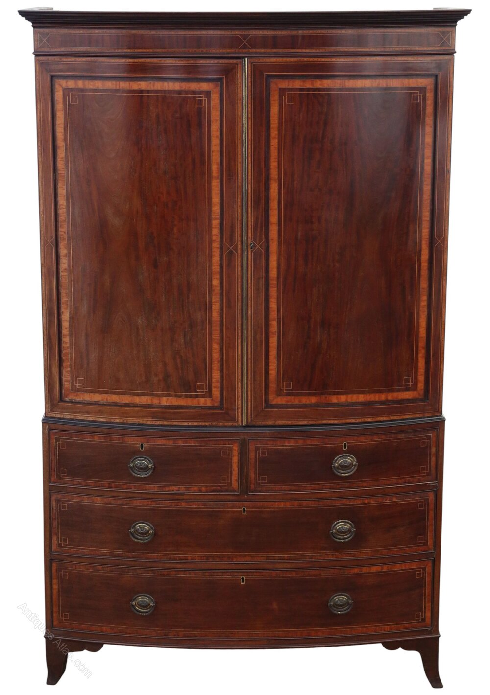 Antique Bow-Front Inlaid Mahogany Linen Press