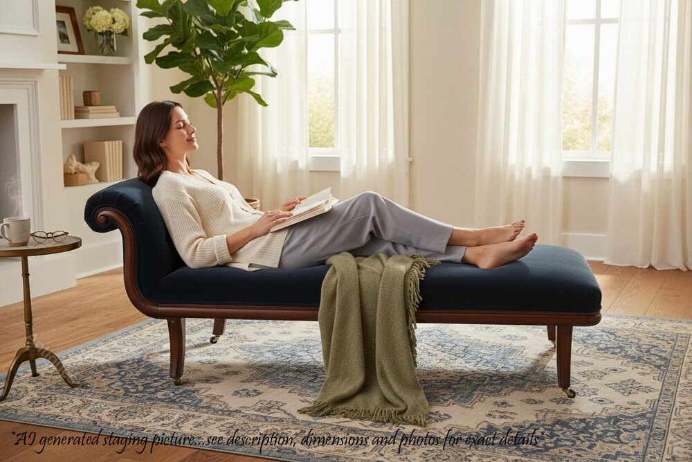 Antique 19th Century Mahogany Chaise Lounge or Day Bed Sofa – Fine QualityFull of authentic charm and character, this elegant 19th-century mahogany chaise lounge is a rare decorative find and perfect statement piece for the right setting. Recently reupholstered in high-quality anthracite velour, it features replacement brass and ceramic castors, lovely clean lines, and refined proportions that combine comfort with timeless style.