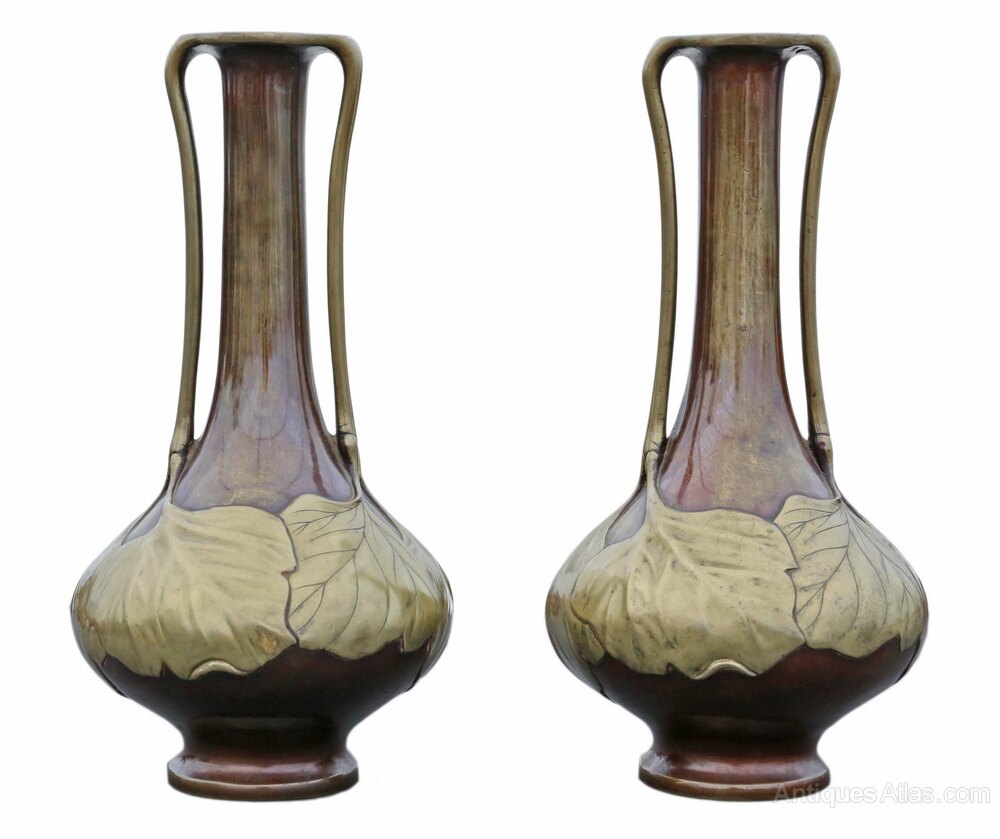 The vases are in very good antique condition overall, showing only minor historic marks and typical signs of use. Please note they may not be fully watertight and should be used with liners if intended for wet floral arrangements they would make brilliant decorative objects
