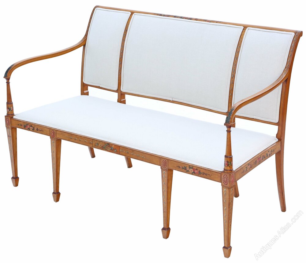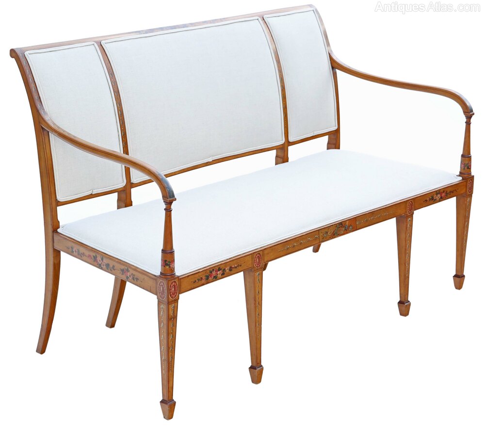 Antique 19th Century Decorated Satinwood Sofa – Late Victorian, Fine Quality