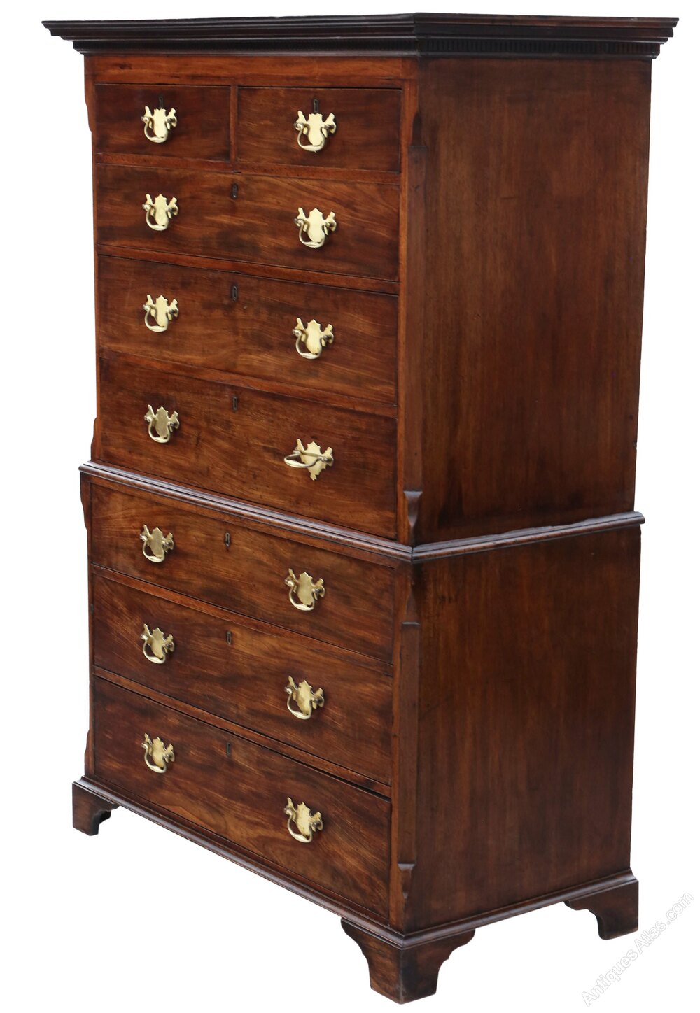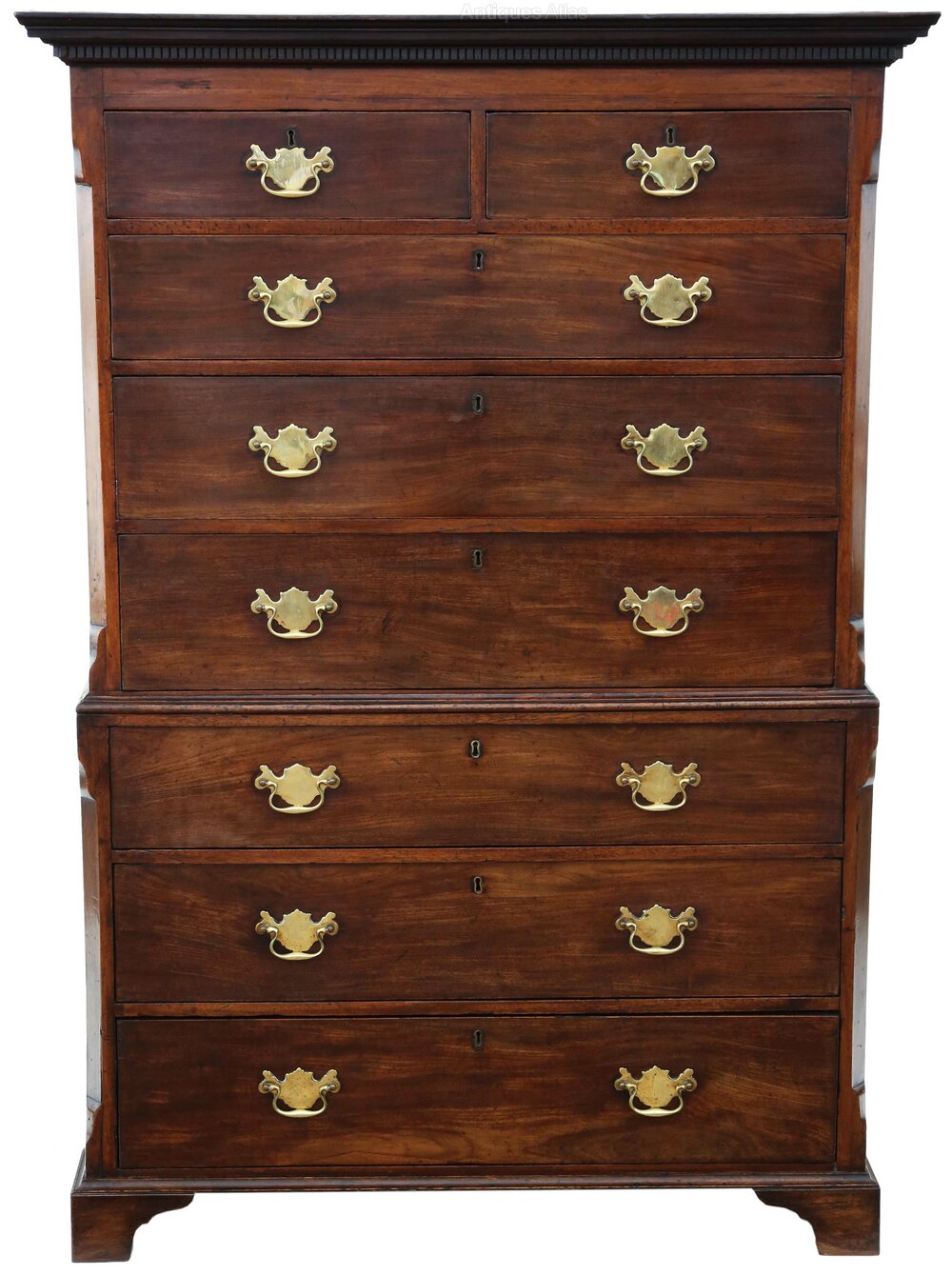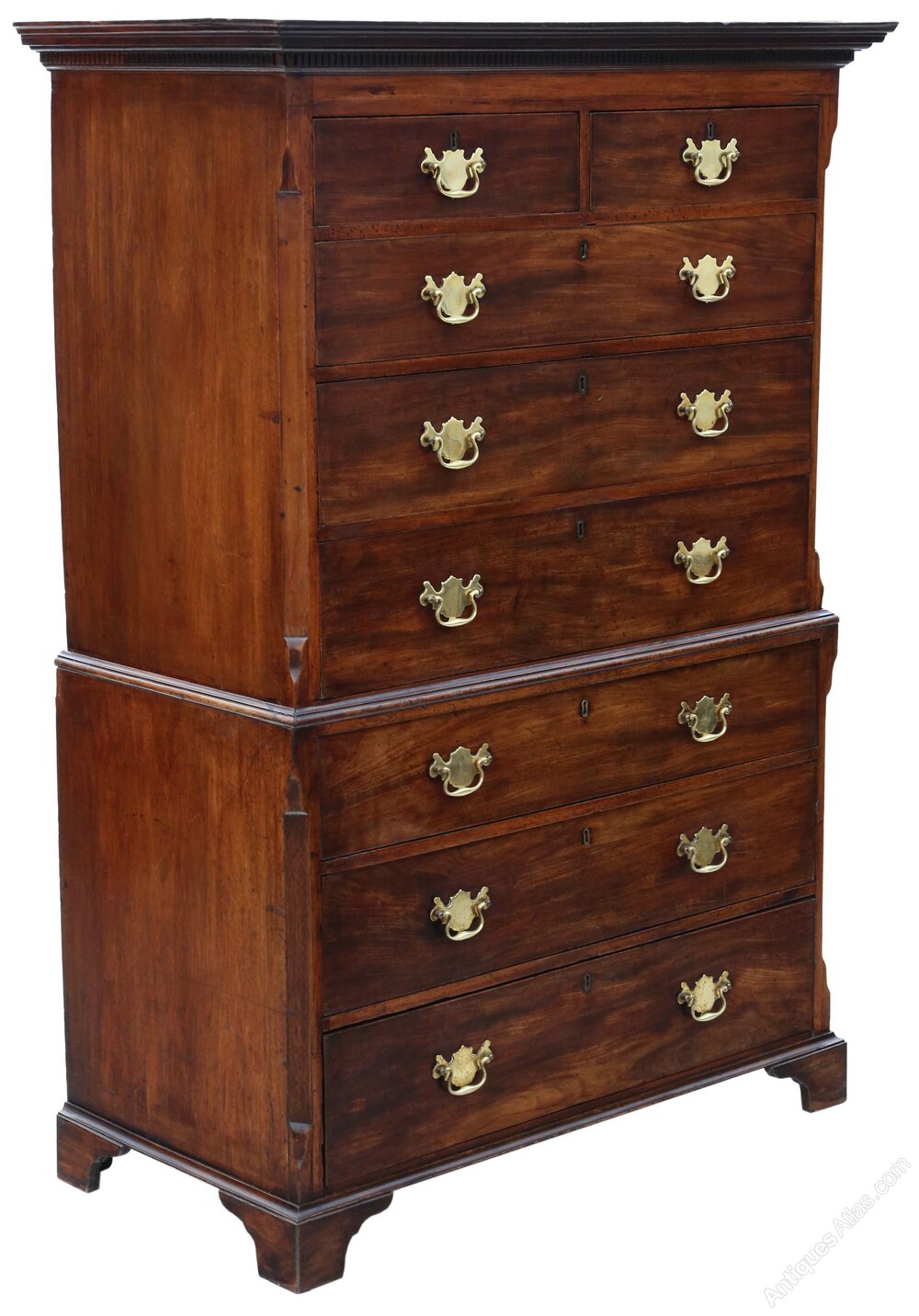 Antique 18th Century Mahogany Tallboy – Chest-on-Chest of Drawers, Fine QualityThis tallboy exudes a lovely age, colour, and patina that adds character to any space. A practical and elegant piece, it is designed to split into two halves for easier transport.