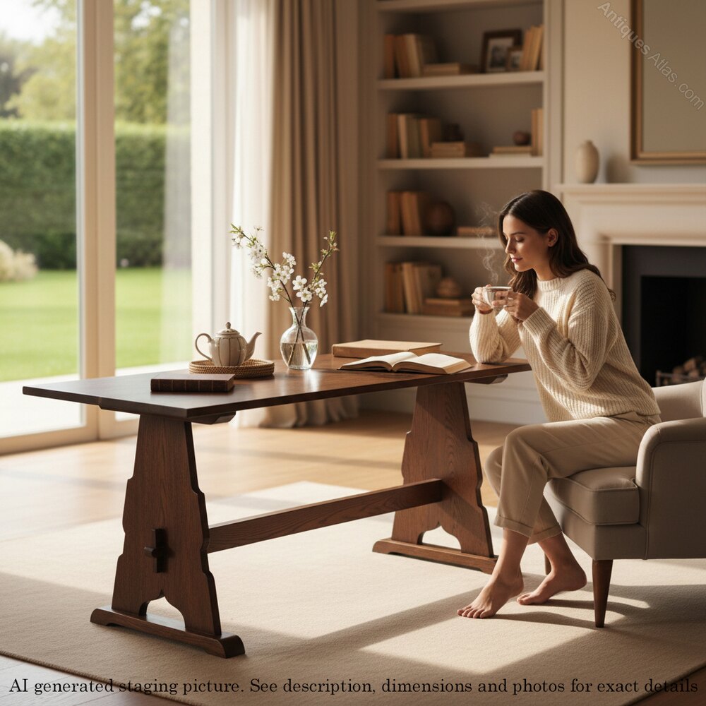 A solid and stylish example of Arts & Crafts design, this oak refectory table is perfect for both formal and casual dining settings.