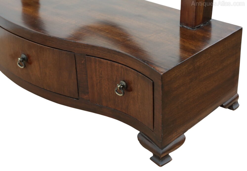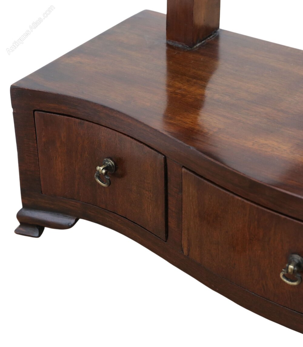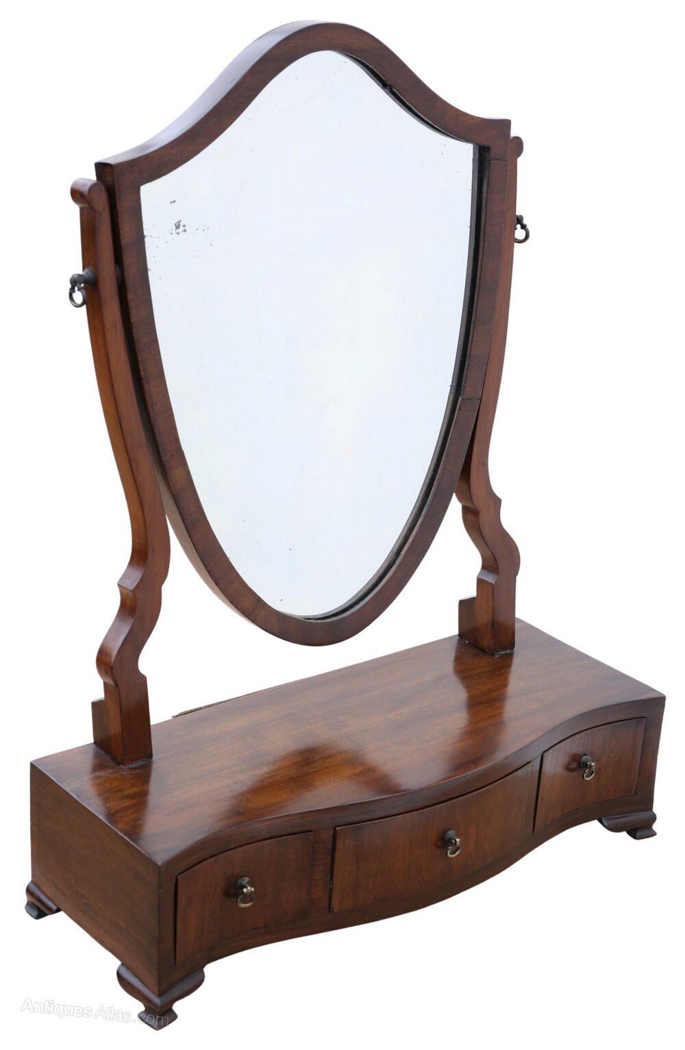 Antique 19th Century Serpentine / Shield-Shaped Mahogany Dressing Table Mirror – Fine QualityThis elegant 19th-century dressing table mirror displays attractive age, colour, and patina. Full of charm and character, this rare decorative find would make a wonderful addition to many period or contemporary interiors. Featuring a lovely serpentine front and a refined shield-shaped mirror, it is both an aesthetic and practical example of quality 19th century storage and bedroom furniture.