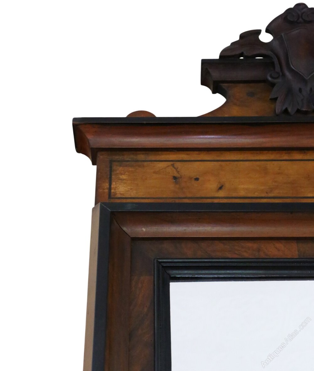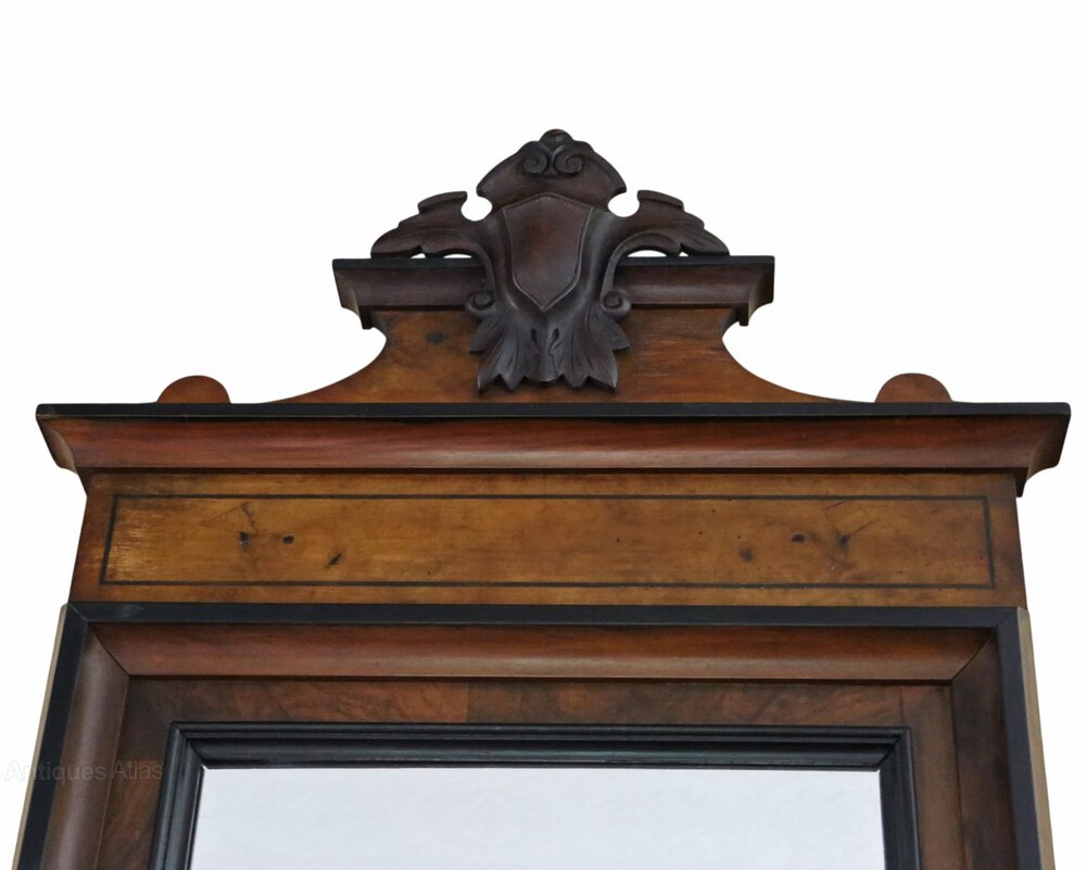 Antique 19th Century Walnut Full-Height Floor/Wall Dressing MirrorDescription