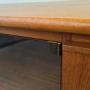 Teak. Smoked glass. Brass.