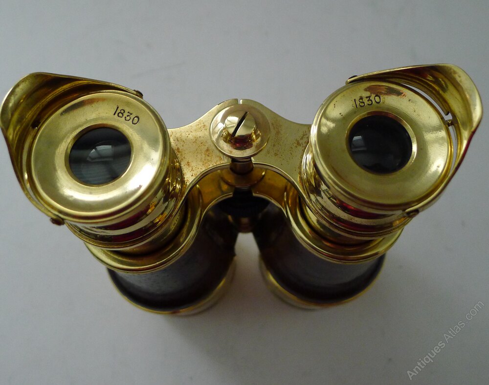A fabulous pair of antique English polished brass binoculars meticulously professionally cleaned and polished, restoring them to their former glory the barrels wrapped in leather. They focus wonderfully and and the eye pieces having eye shields that swivel across to the outside when in use and swivel back to the centre for packing away in the case.One of the barrels is signed by the maker W. Watson & Sons, London with the number 1830, this is also engraved on each brass eye piece I am unsure if this is the date of the company was established, I believe it was established in 1837 in London.