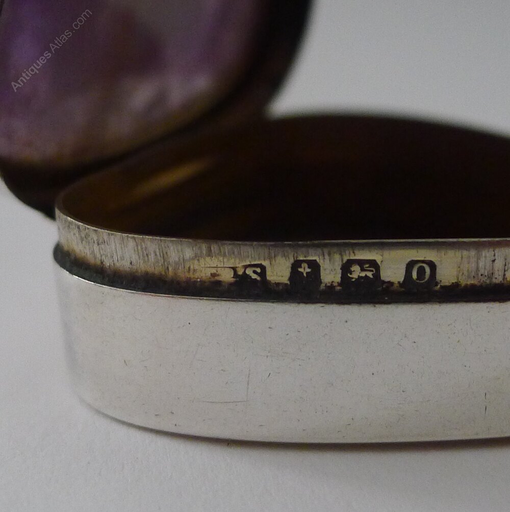 Antique English Silver & Amethyst Pill Box - 1913