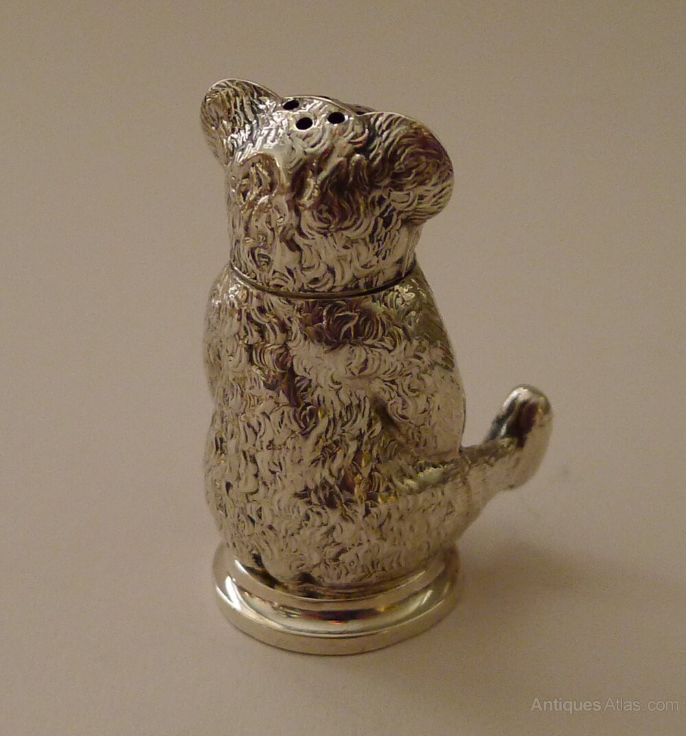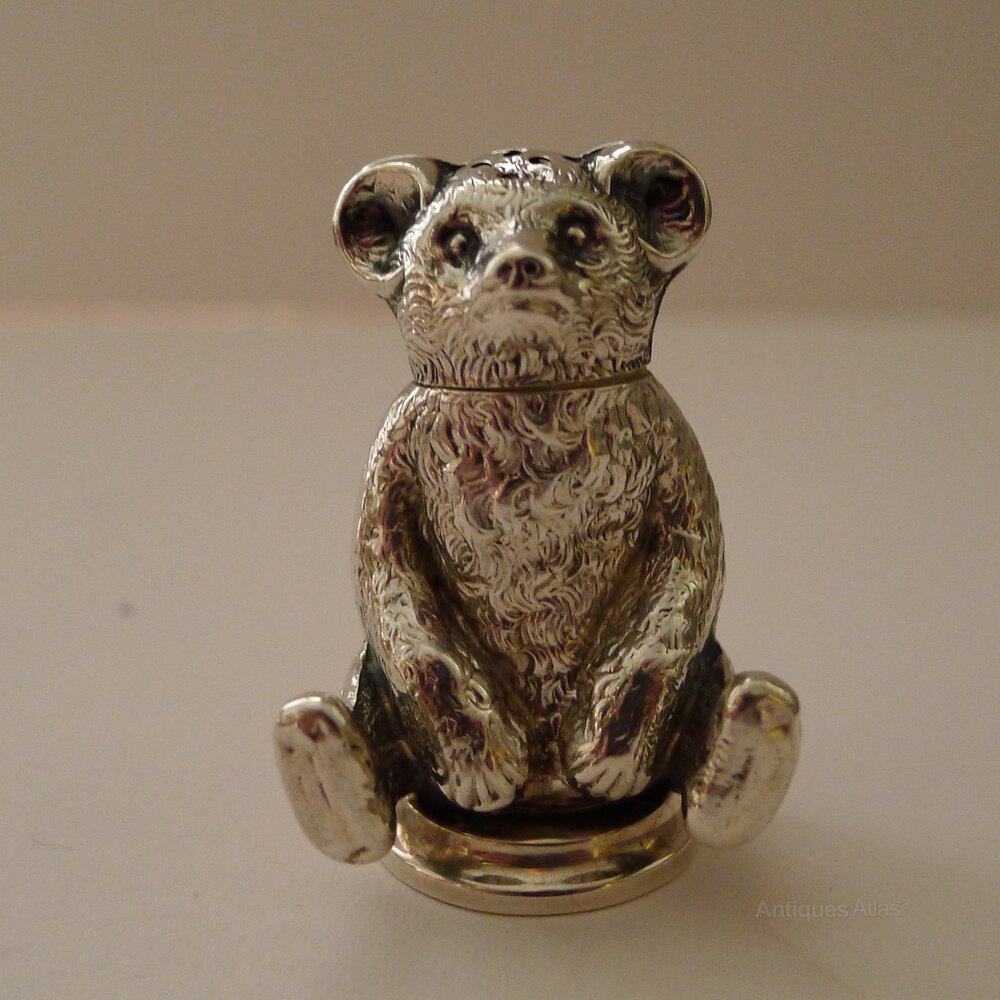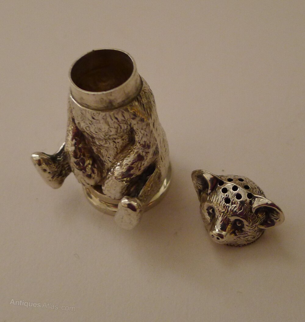 Antique English Silver Teddy Bear Pepperette