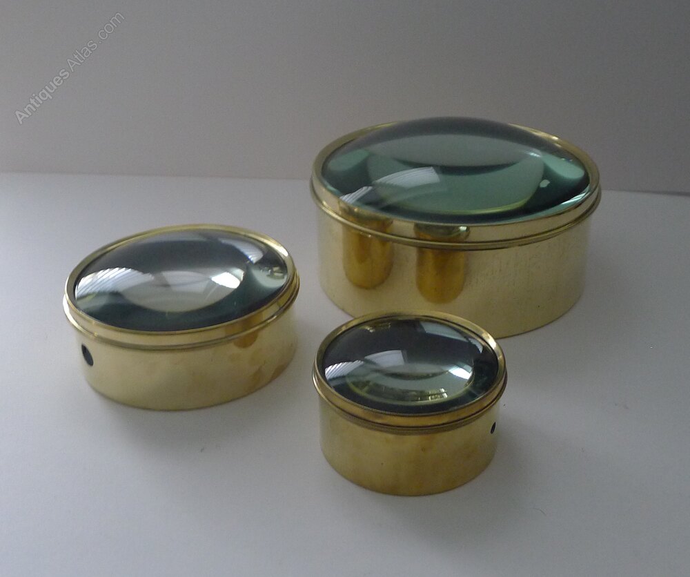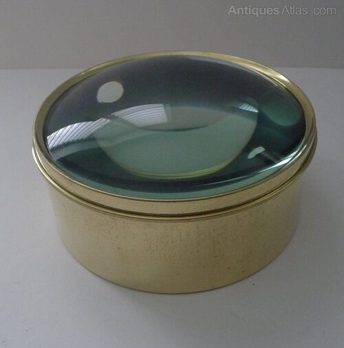Always very popular and a very useful desk-top accessory, this one is one of the largest I have ever had, quite an imposing size this size being the most sought-after and hardest to source. These large circular magnifiers actually are the condenser or magnifier from a Magic Lantern dating to around 1910 they are rescued, polished up and put back to use in the modern day.This one is made from polished brass and is excellent quality, un-marked but probably by Optimus.