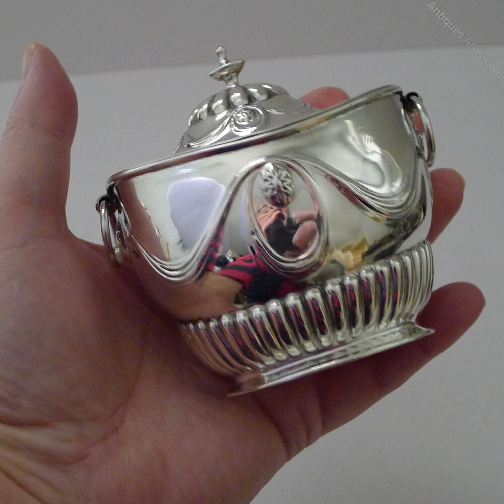 Excellent antique condition measuring 4" handle to handle x 2 1/2" x 4" tall to top of finial. Weighing 130.6 Grams / 4.2 Troy Ounces.