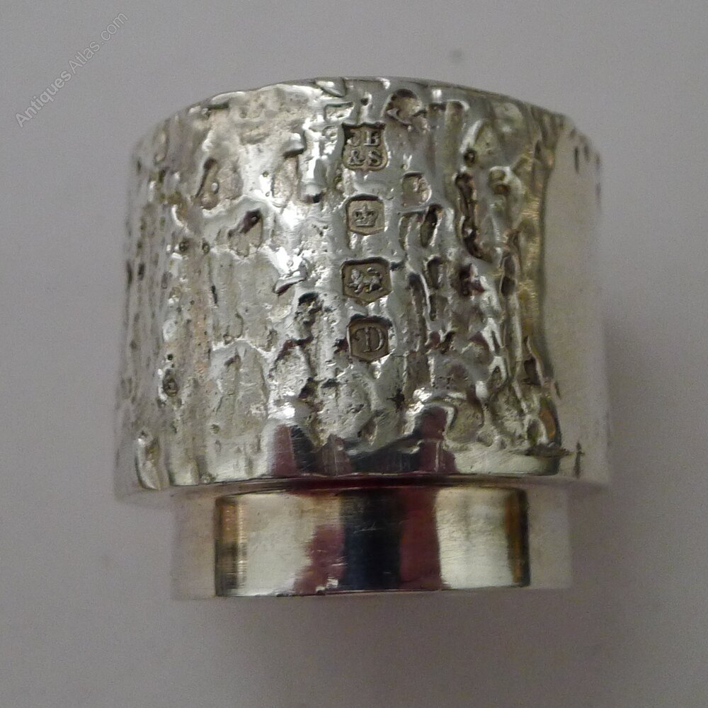Superb condition without any inscriptions with the egg cup measuring 1 1/2" in diameter x 1 3/8" tall the napkin ring measuring 1 1/2" in diameter x 1" and the spoon measuring 4 3/4" in length. The box measures 6" x 4 1/2" x 2 1/2".