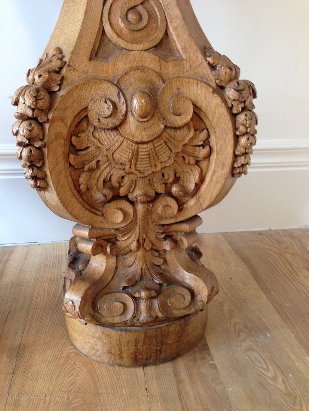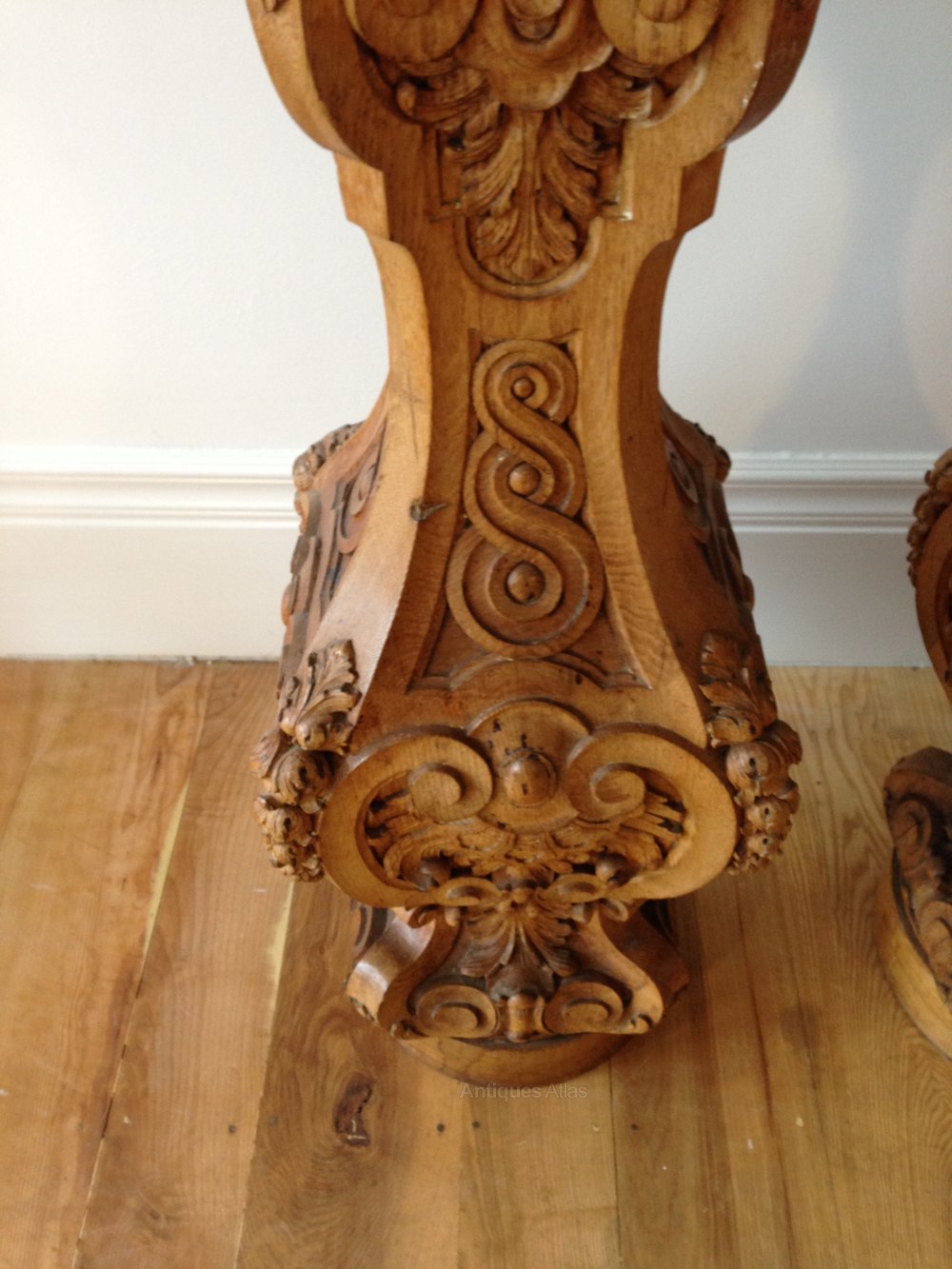 With carved foliate sprays, and Celtic design in waisted panels.