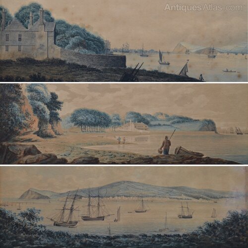 Views of Teignmouth & Shaldon, Devon (early c.19th)Three early 19th century watercolours “Views of Teignmouth & Shaldon” ascribed to William Pidsley? – from the estate of Jennifer Madge.