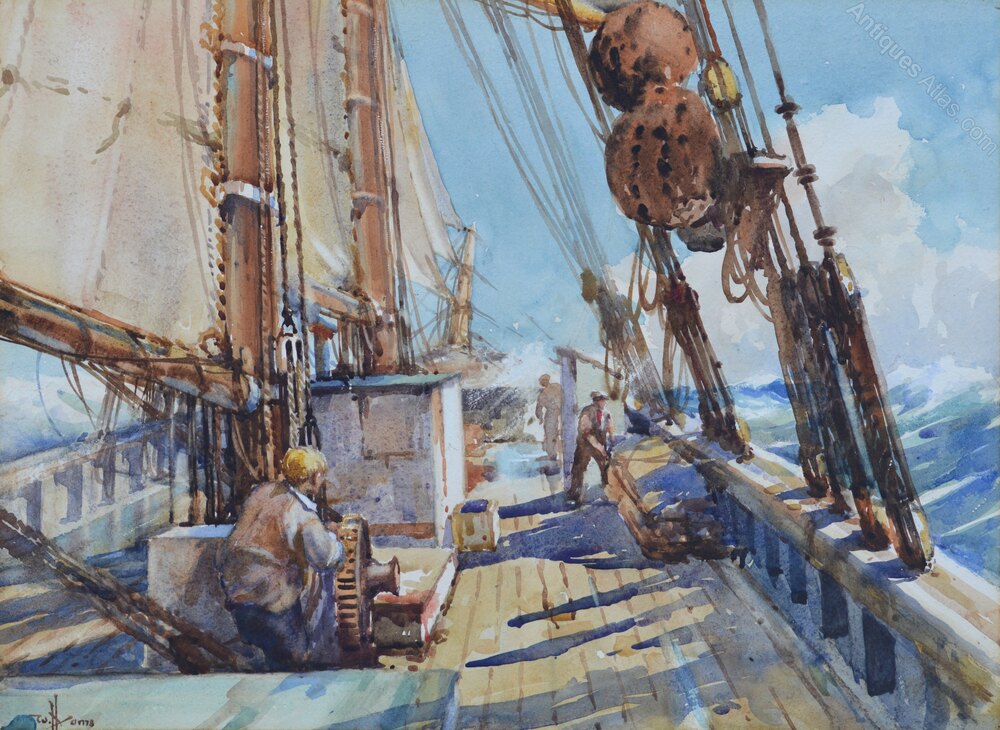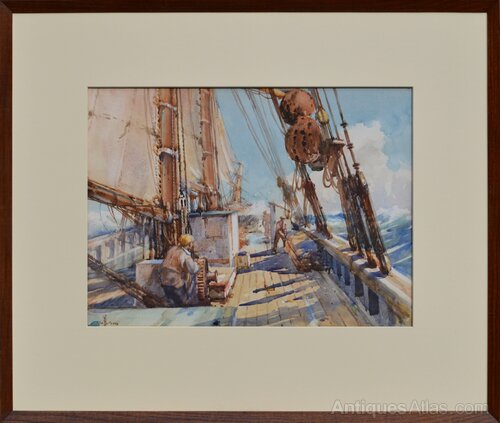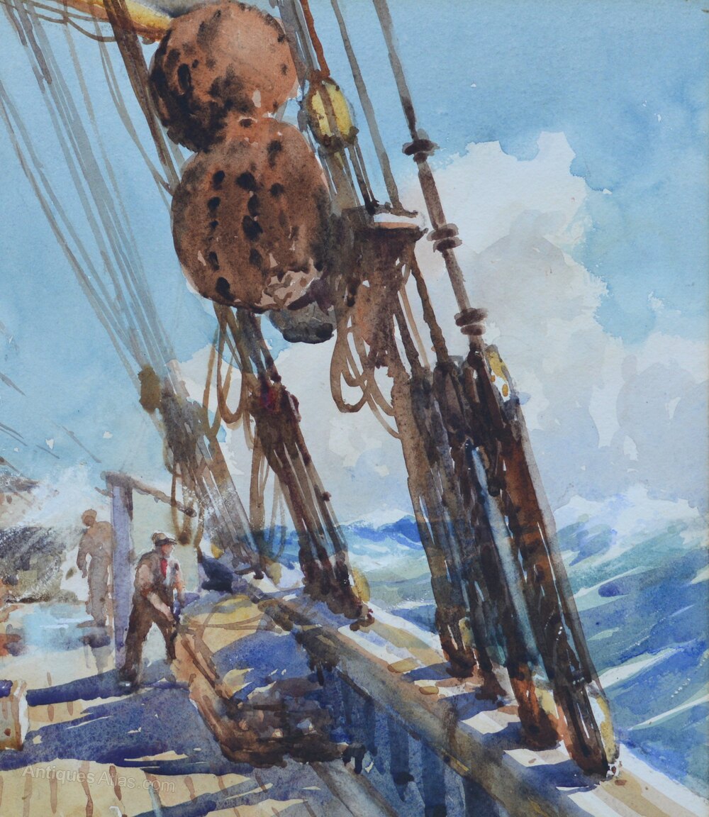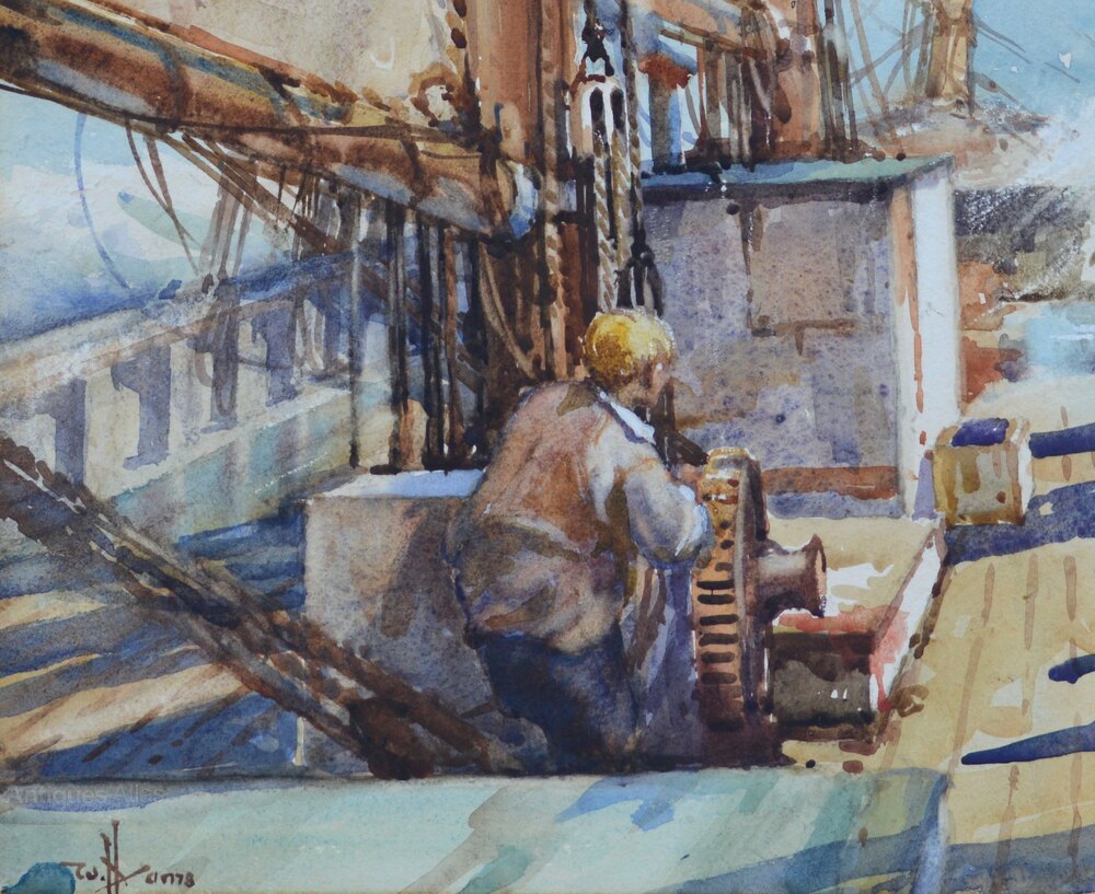 William Hyams (1878-1952)On Deck of a Danish Three Masted Schooner
