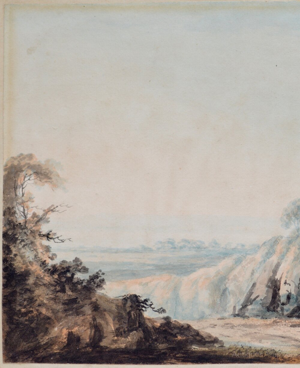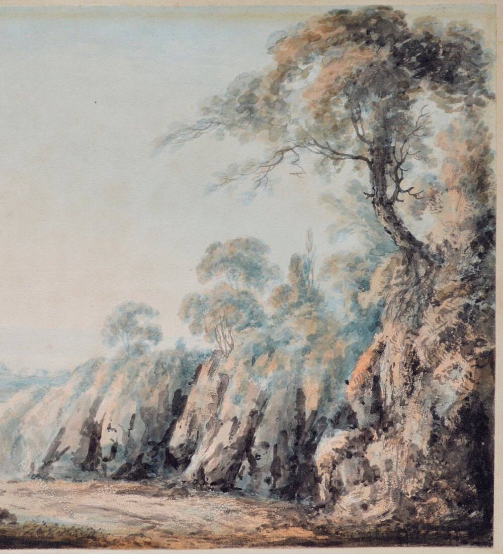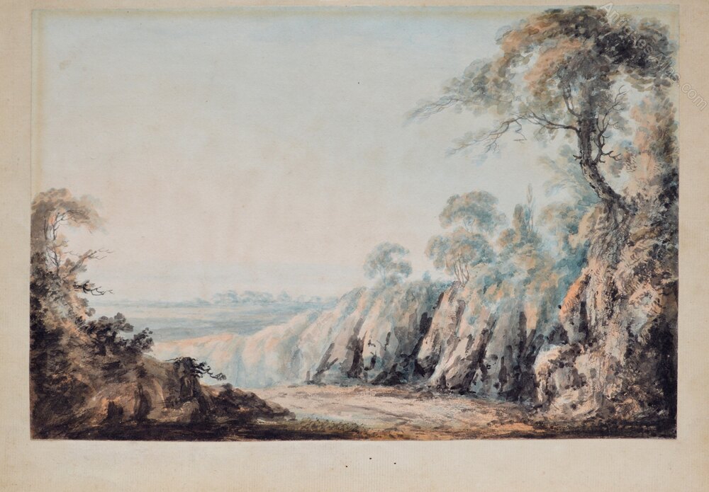 Attributed to Edward Dayes (1763-1804) – A Wooded ValleyWatercolour laid onto thick laid paper, watermarked Whatman with Fleur de Lis and Crown.