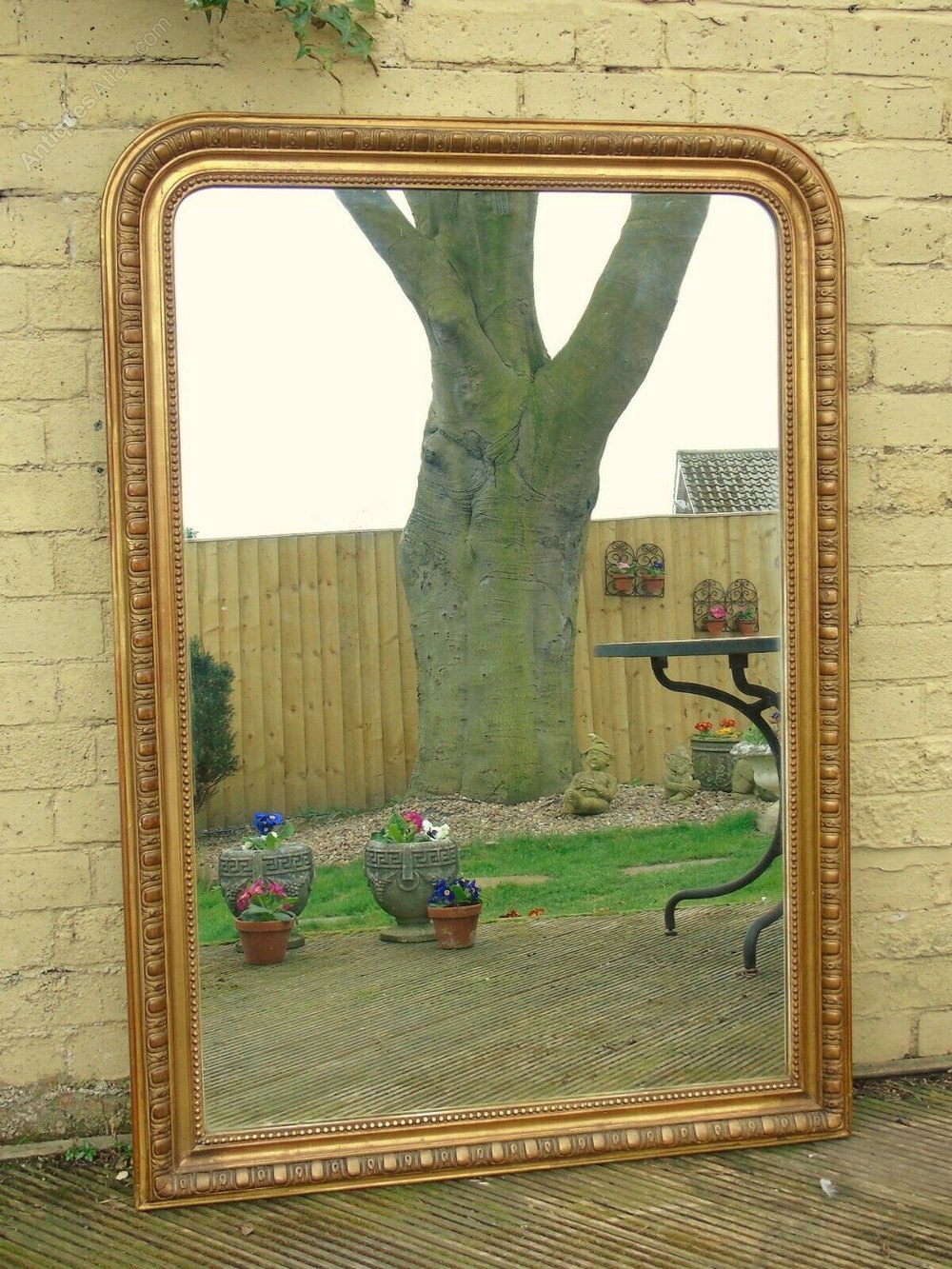 This an imposing French gilt mirror of good proportions which dates from around 1870. The mirror has an elegant arched top and an attractive good quality gesso gilded frame with an egg and dart style moulding. The mirror has its original 3/8 “ mercury plate which is in very good useable condition and it’s original backboards. The mirror is a grand size measuring 145 cms in height and 102 cms wide. It would look terrific above a large fireplace or as a free standing wall or floor mirror.UK insured delivery is available with our careful furniture courier and costs £60 plus vat to most UK destinations. Some areas and extremities may vary, please text or email your postcode for an accurate quote.