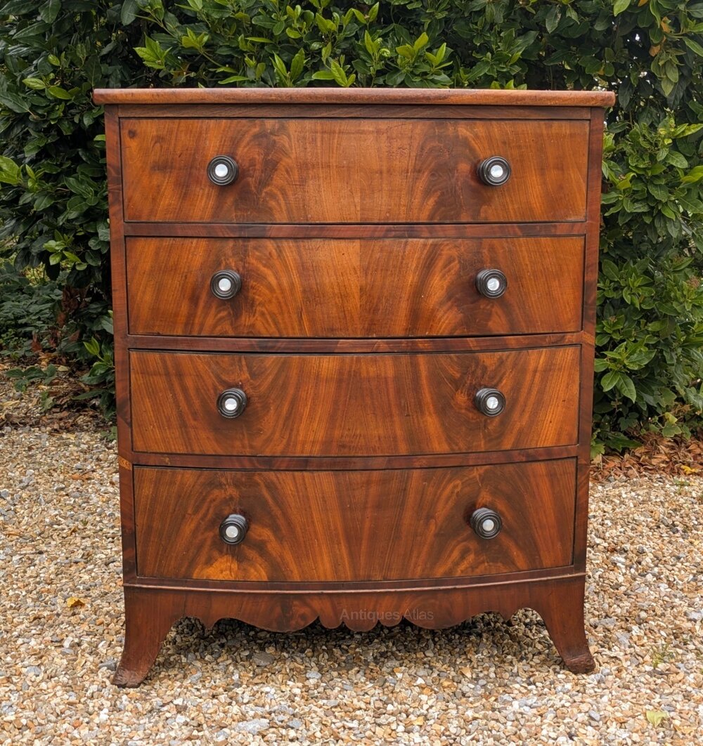 Neat Regency Bow Front Mahogany Chest Of Drawers