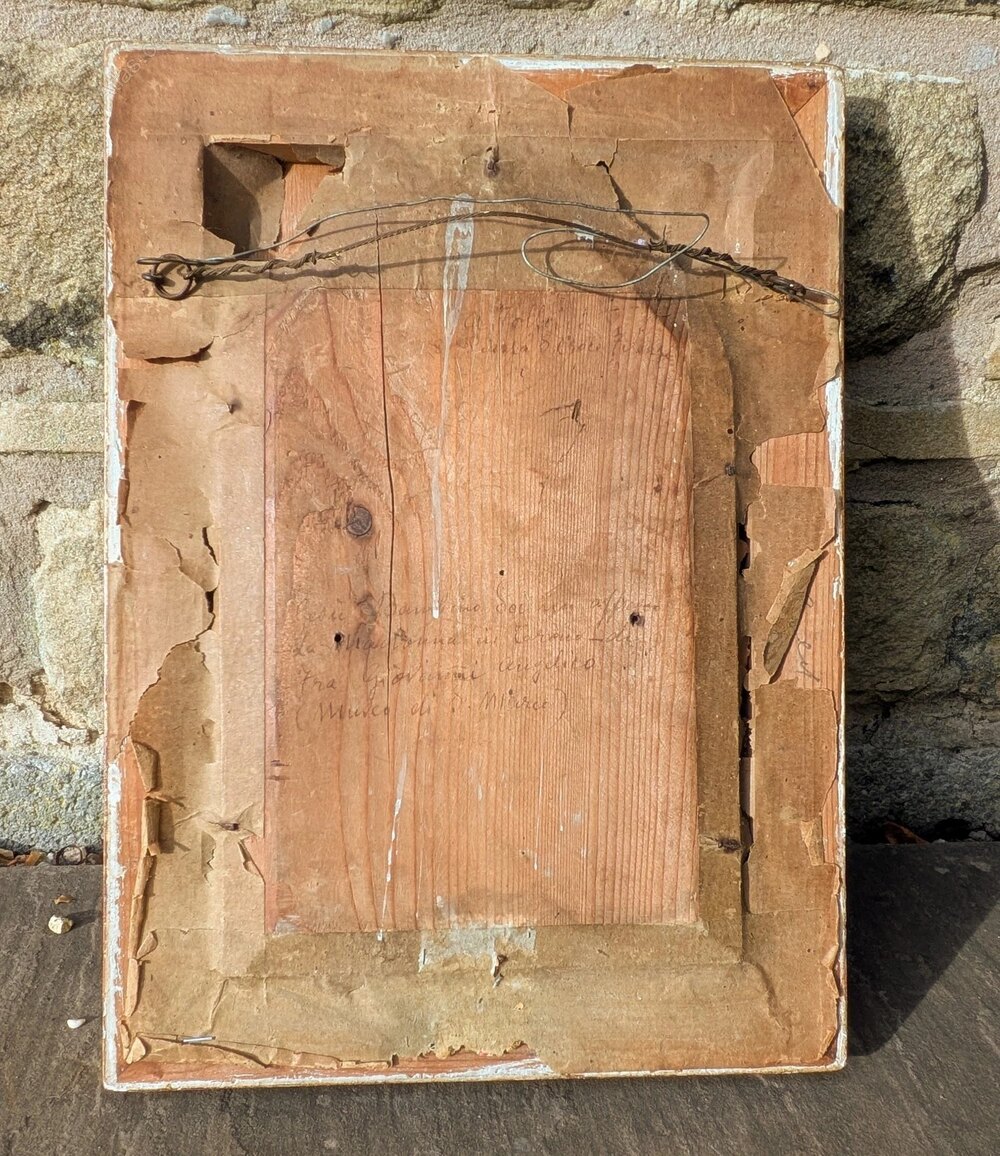 The work is beautifully and finely painted and the surrounding carved giltwood frame has its original water gilding in lovely condition.