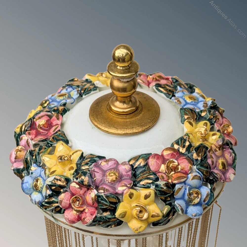 Antique French Porcelain Cherub Lamp Beaded Shade