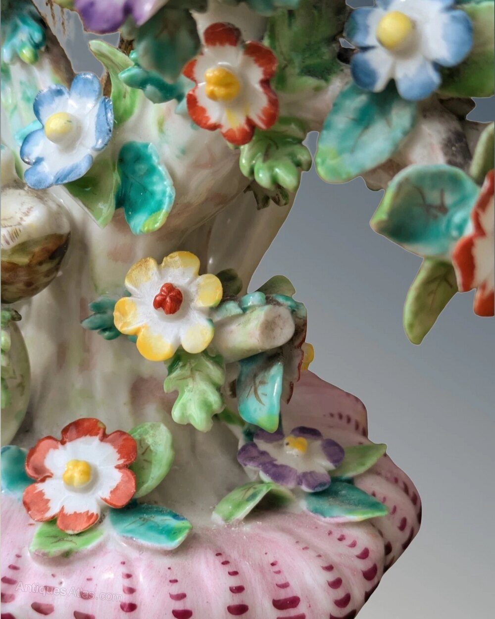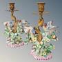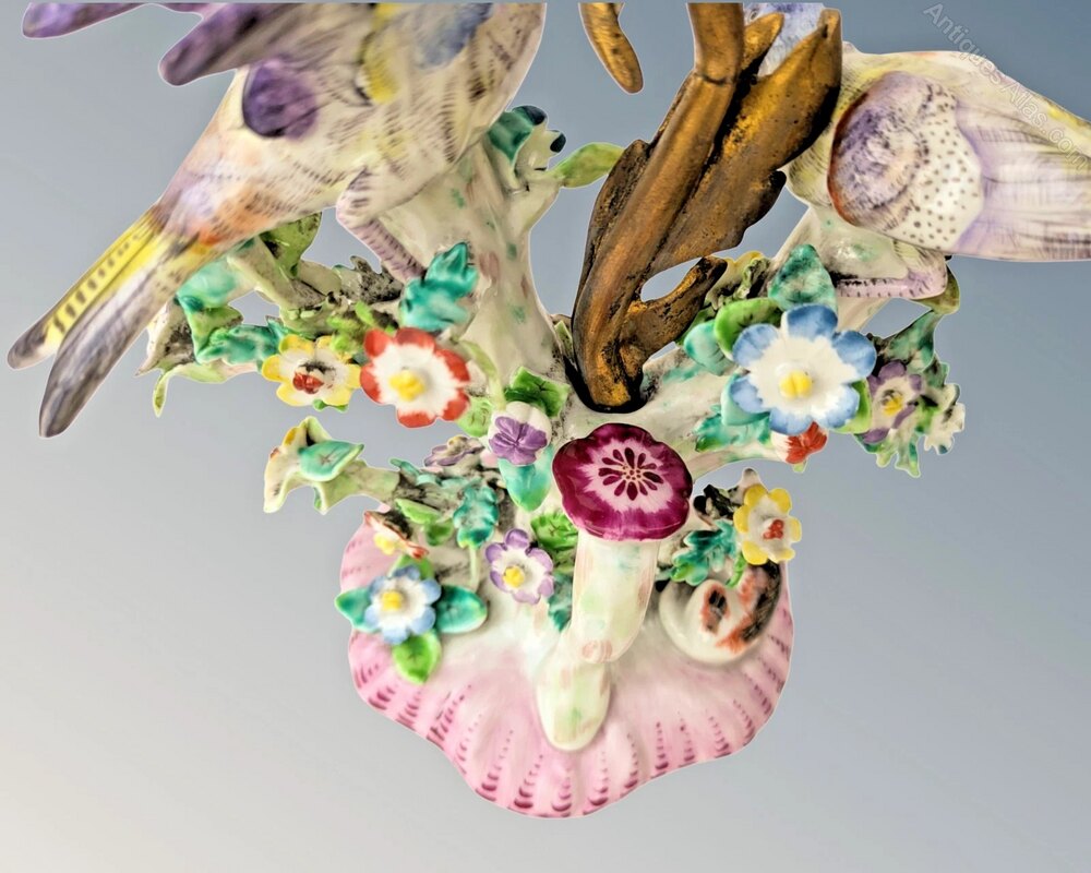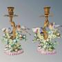 Good Pair of Derby Porcelain Bird Candelabra Gilt