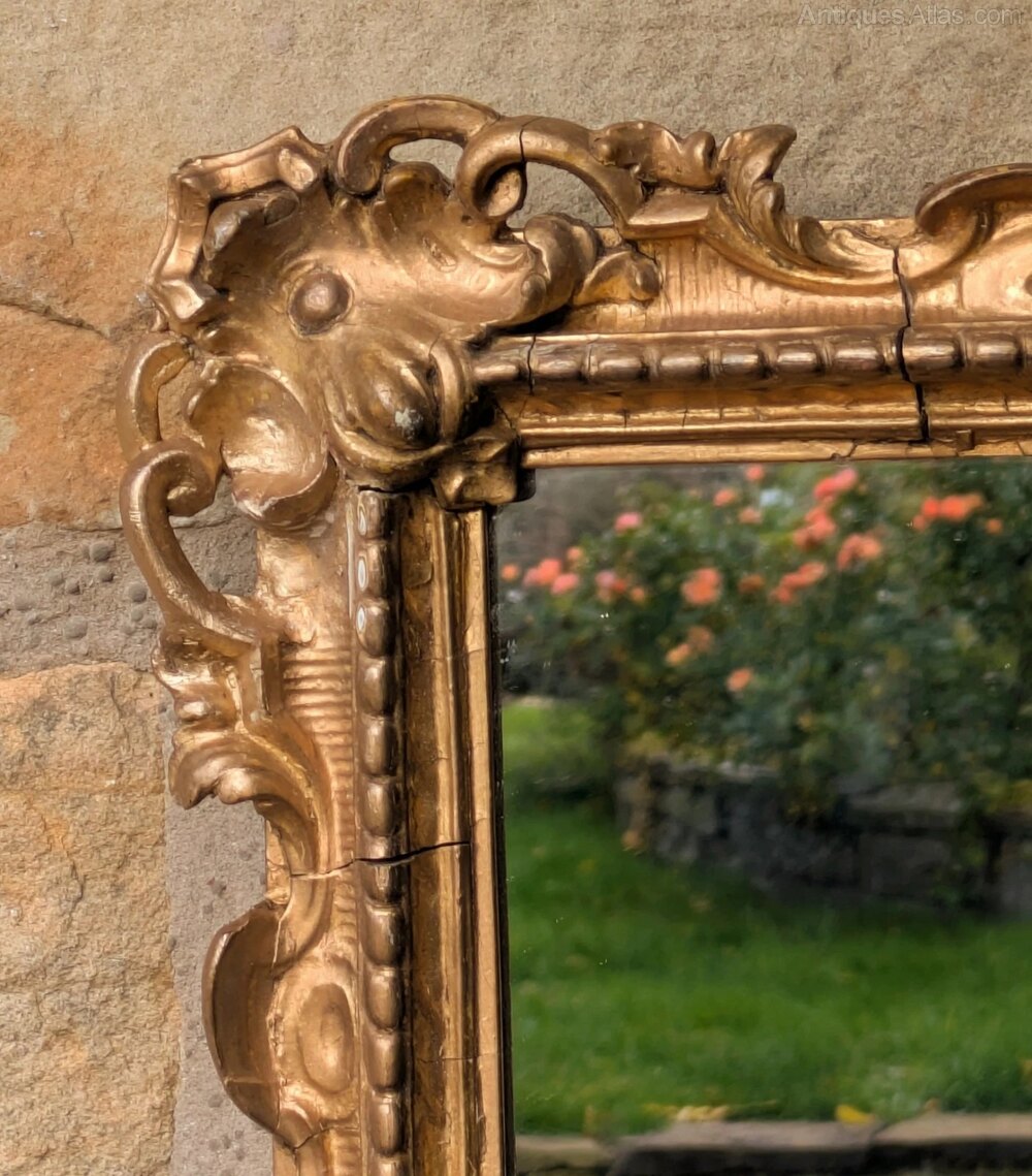 This is a very smart 19th century wall mirror in solid wood with attractive cast gesso moulded detail and its original gilt finish.The mirror plate is in excellent clean condition and this is a very useful size measuring 61 cms by 68 cms.