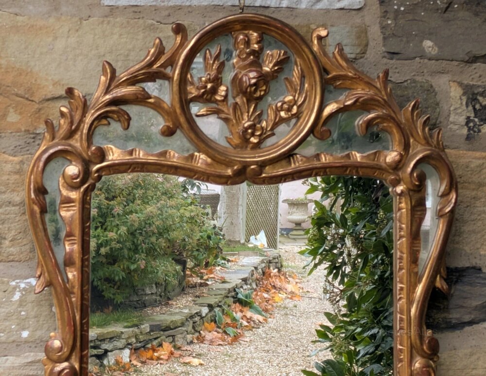 This is a beautiful gilded wall mirror in excellent clean condition dating from around 1870.The outstanding mirror is in superb clean condition and has a delightful design in the French Baroque style. The frame is in hand carved timber with its original gilded gesso finish in lovely condition, quite remarkable for the age of the piece.
