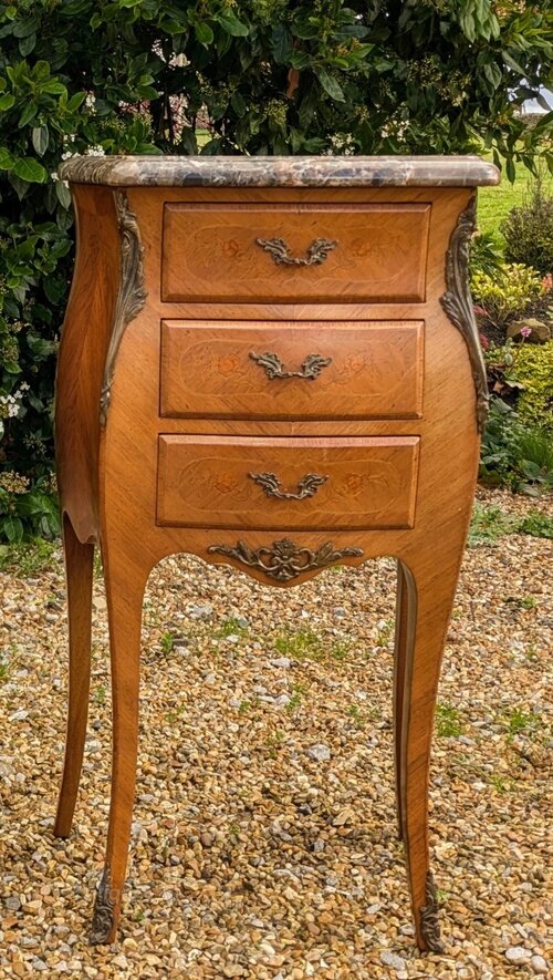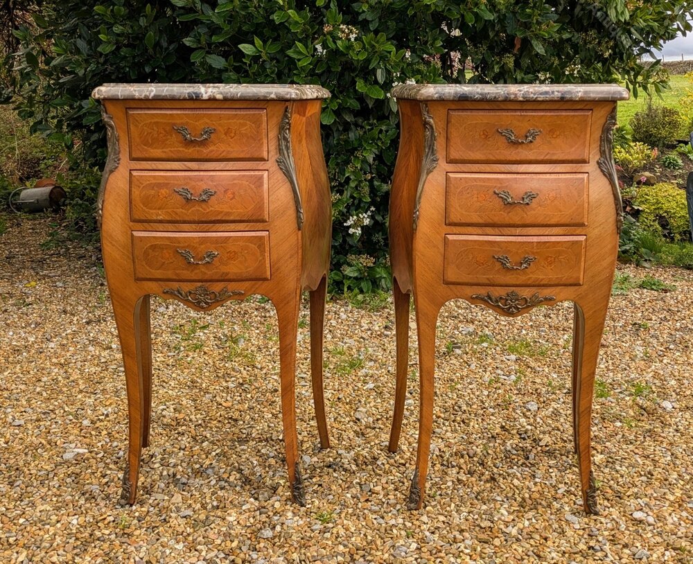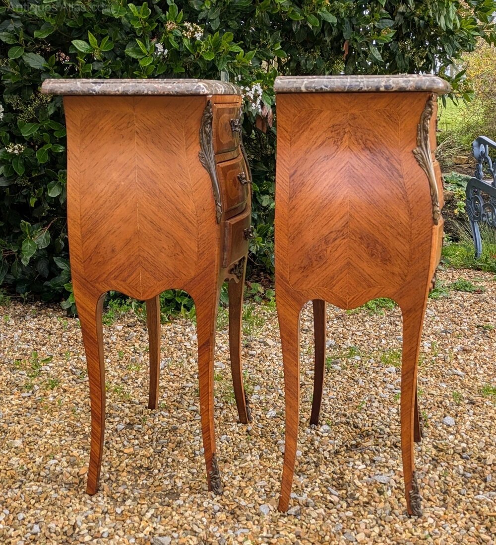 Good Pair of French Walnut & Marble Bedside Cabinets