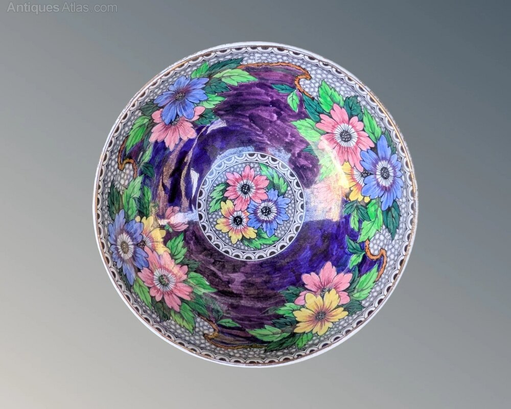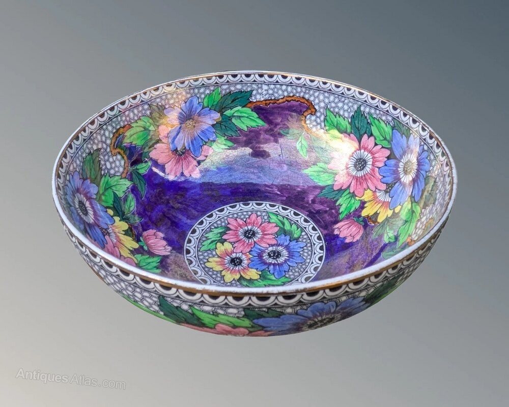 Perfect example Maling bowl in rare Honeycomb and Daisy design circa 193021 cms in diameter by 10 cms high.