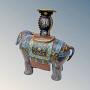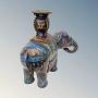 These are crafted in solid brass with beautiful coloured enamel designs inlaid throughout their highly decorated bodies. The pair have removable candle holders to their backs on the decorative howdah and both still have their solid brass tusks present.