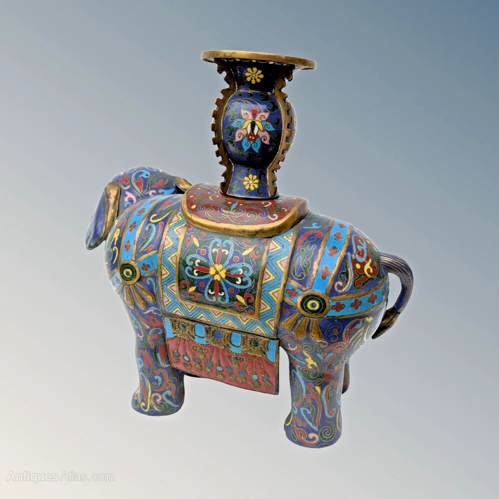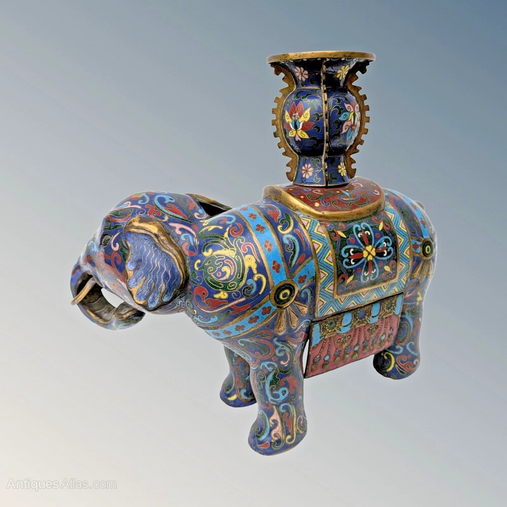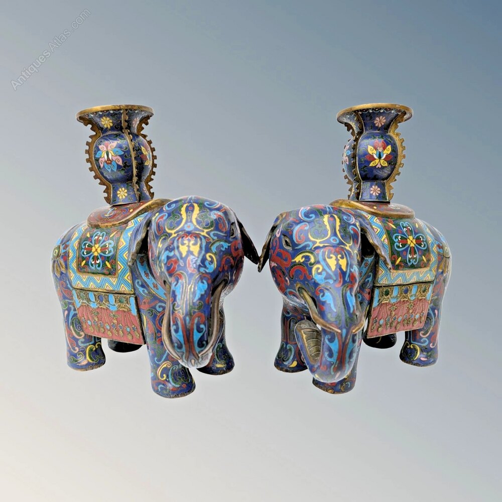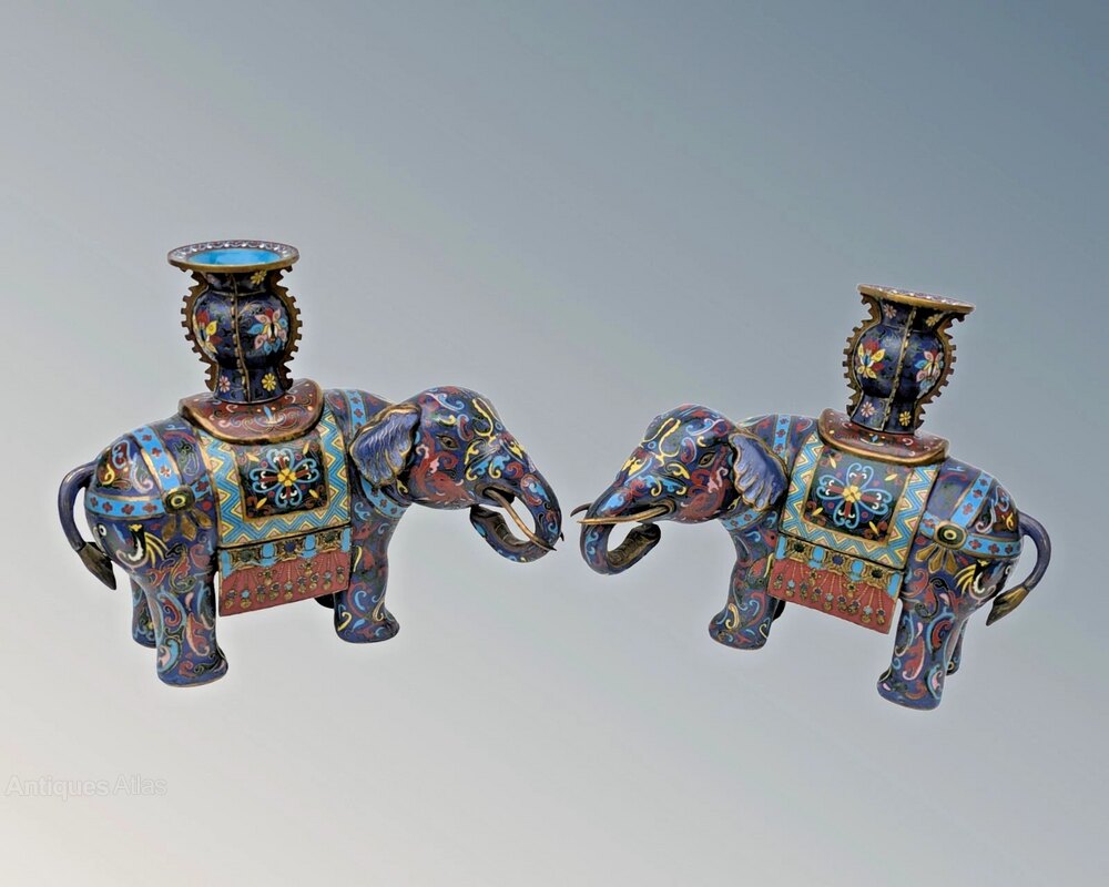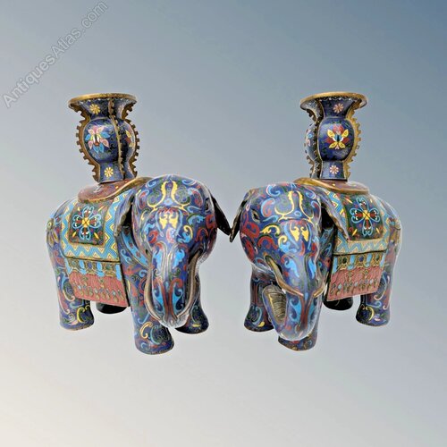 Fine Pair of Chinese Cloisonne Elephants Qing Peri