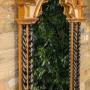 This is a most striking and impressive Gothic design wall mirror of good scale by Harrison & Gil from their Dauphine range.Harrison and Gil (later associated with designer Christopher Guy) are renowned for producing high-quality, handcrafted, and often gilded mirrors, with the “Dauphine” range being a notable, decorative line. These vintage 1980s-2000s mirrors typically feature, elaborate, ornate carvings in Italian Baroque, Rococo, or Louis XVI styles, often using wood, faux bois, and gold leaf finishes in the traditional antique style.