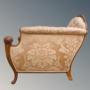 This amazing armchair is actually part of a suite of upholstered furniture we currently have in stock, shown here in the last photograph. The suite includes four armchairs, a beautiful sofa, all in superb condition. There is also a walnut coffee table with the same quirky carved walnut knops.